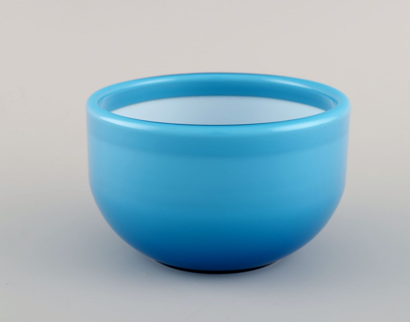 Michael Bang for Holmegaard. To Palet skåle i lyseblåt mundblæst kunstglas. Midt 1900-tallet. Måler: 13 x 8,5 cm. I flot stand.