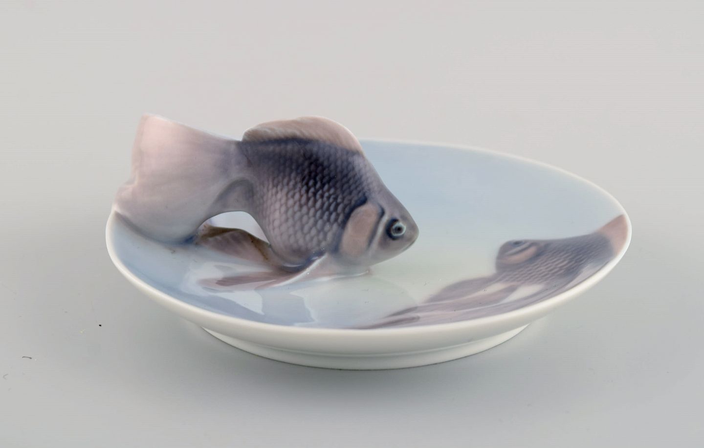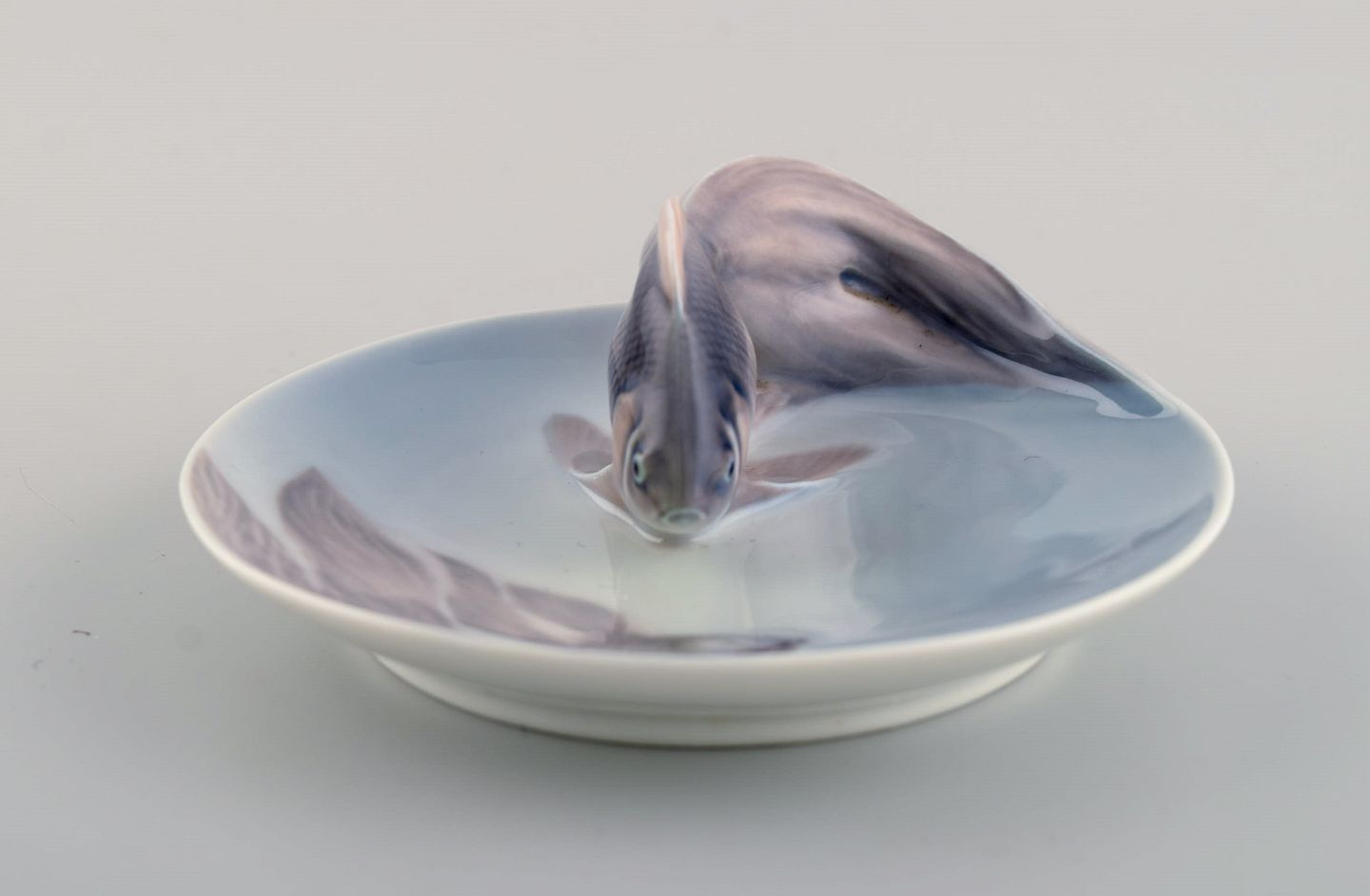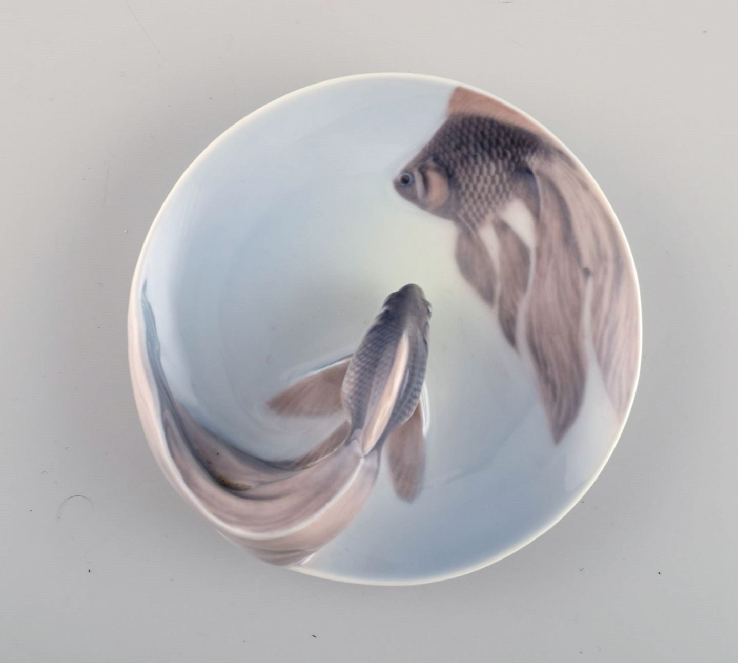 Royal Copenhagen skål med fisk i håndmalet porcelæn. Dateret 1967.