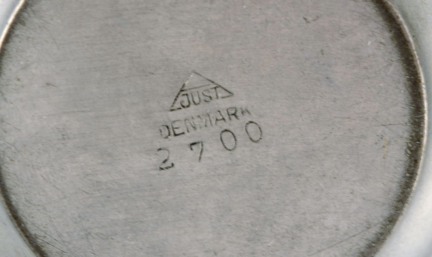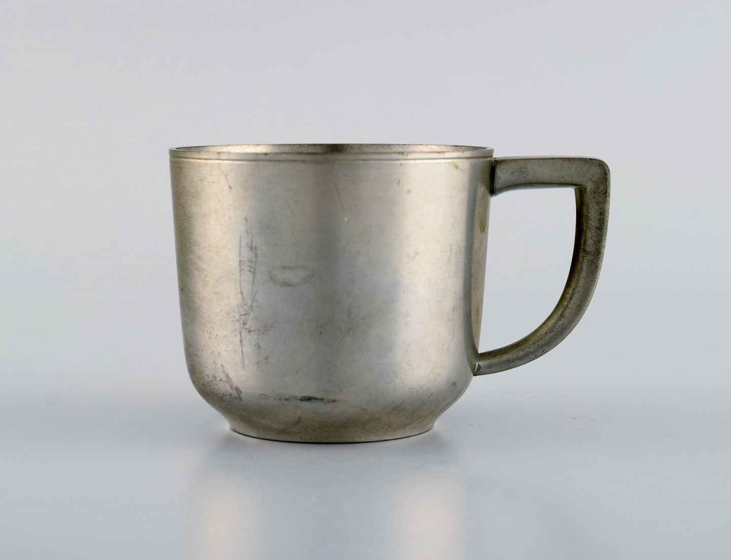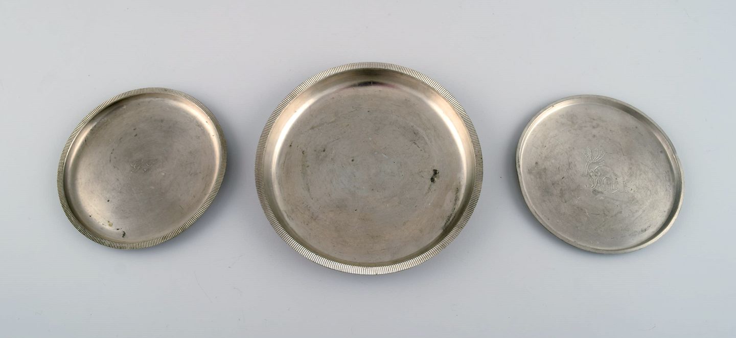 Just Andersen. Two candlesticks, eight bottle trays and a mug in pewter. 1930 / 40's.