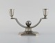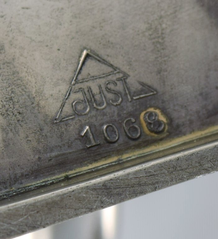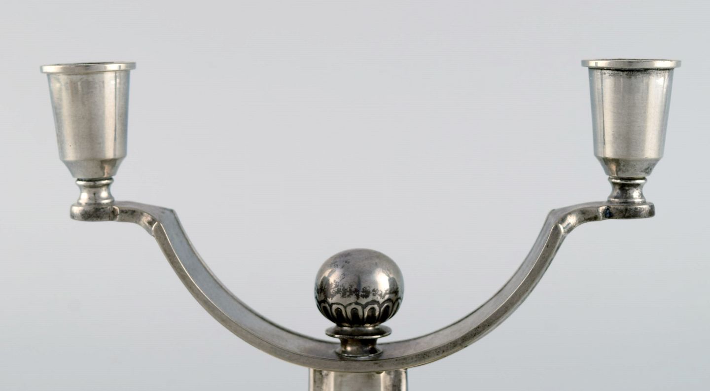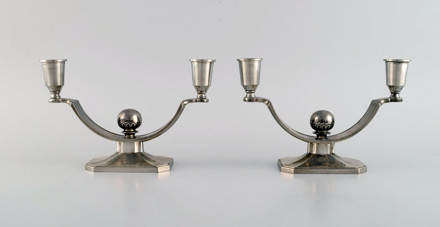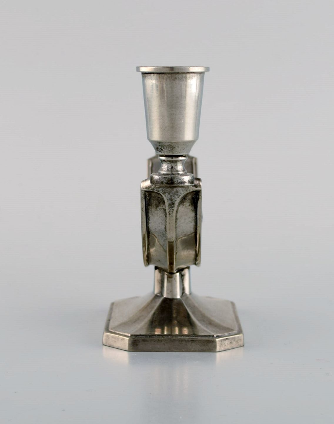 Just Andersen. Et par lysestager i tin. 1930'erne. Modelnummer 1068. Måler: 18,5 x 12 cm. Stemplet. I flot stand.