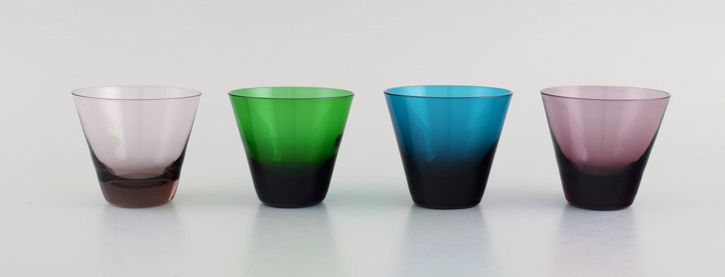 Lennart Rosén for Reijmyre. Ni Mambo drikkeglas i mundblæst kunstglas. 1950'erne. Måler: 7,3 x 6,5 cm. I flot stand.