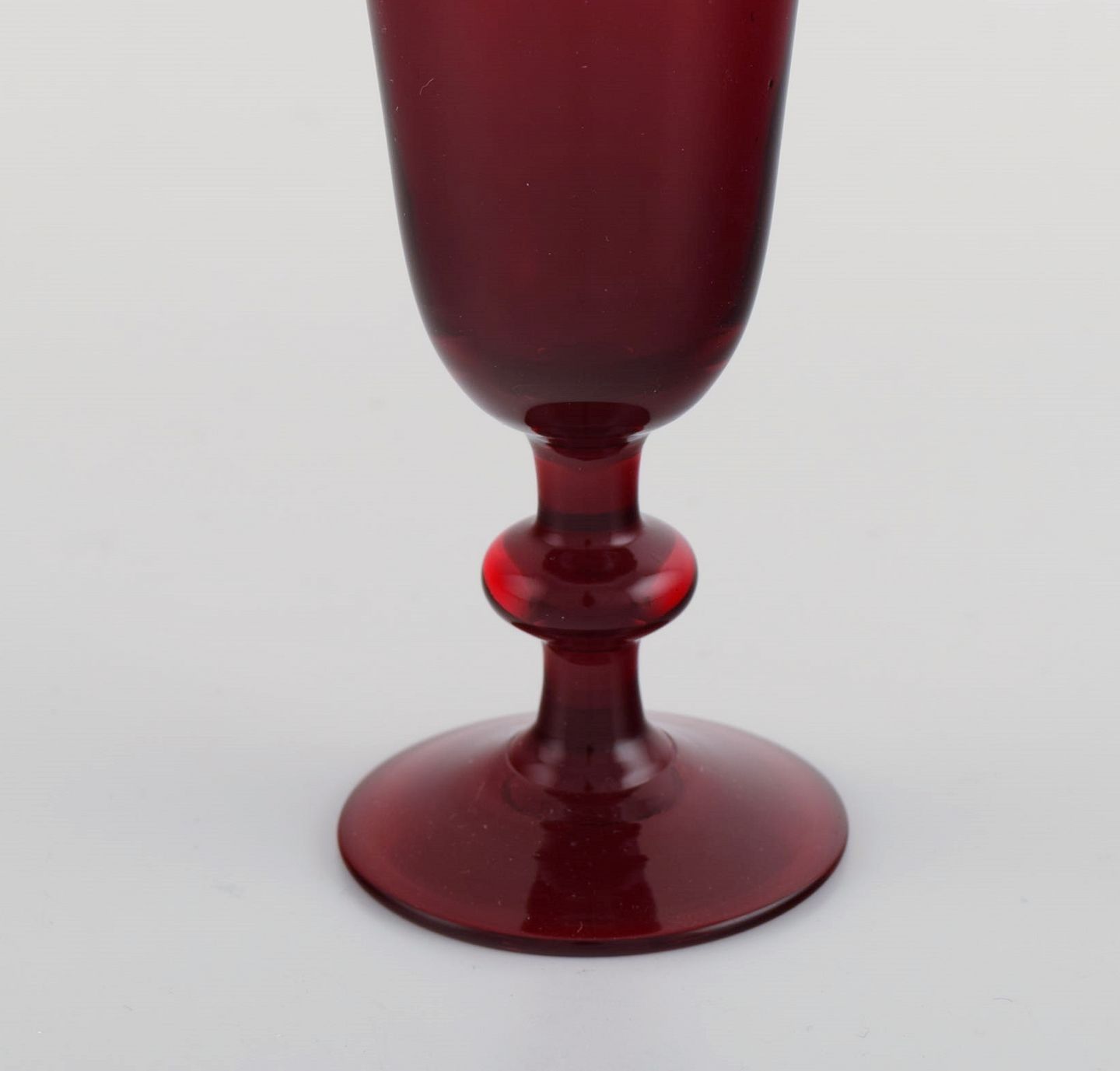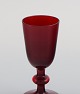 Monica Bratt for Reijmyre. Tolv hedvinsglas i rødt mundblæst kunstglas. 1950'erne. Måler: 12,5 x 6 cm. I flot stand.