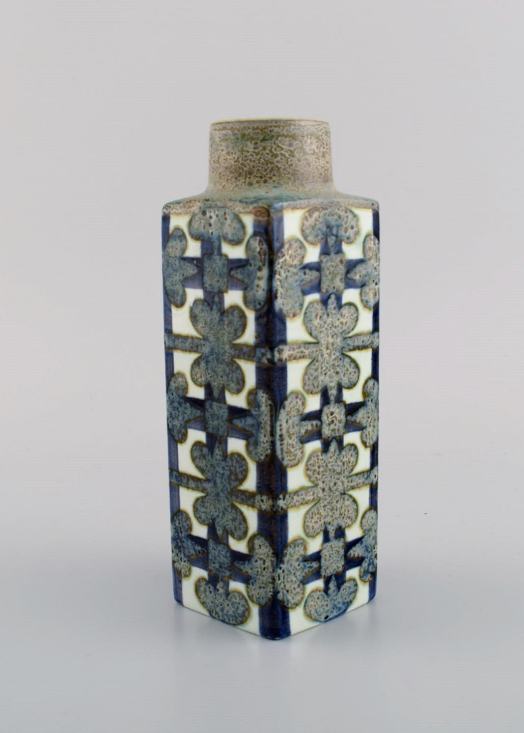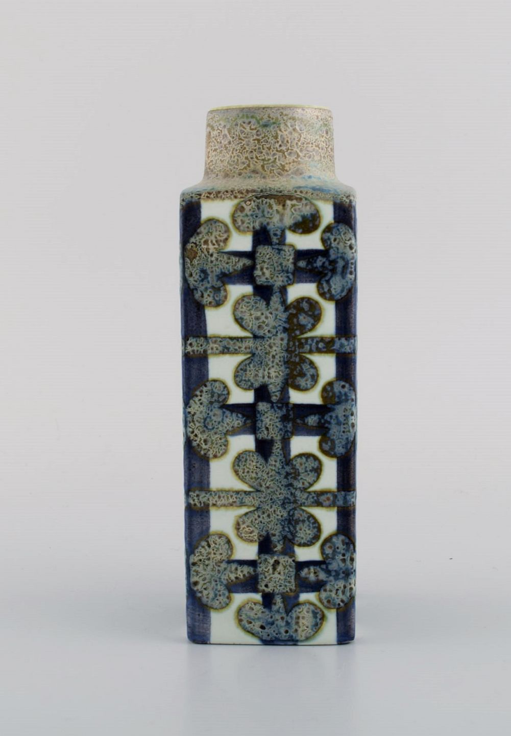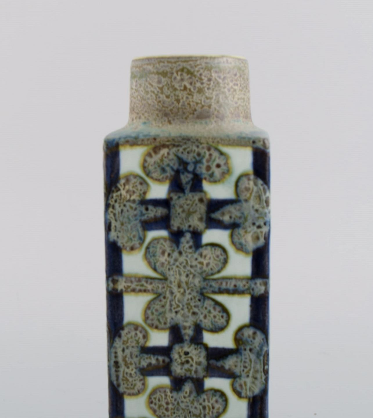 Baca vase med mønstret glasur i nuancer af grøn, blå og hvid. 1960'erne.