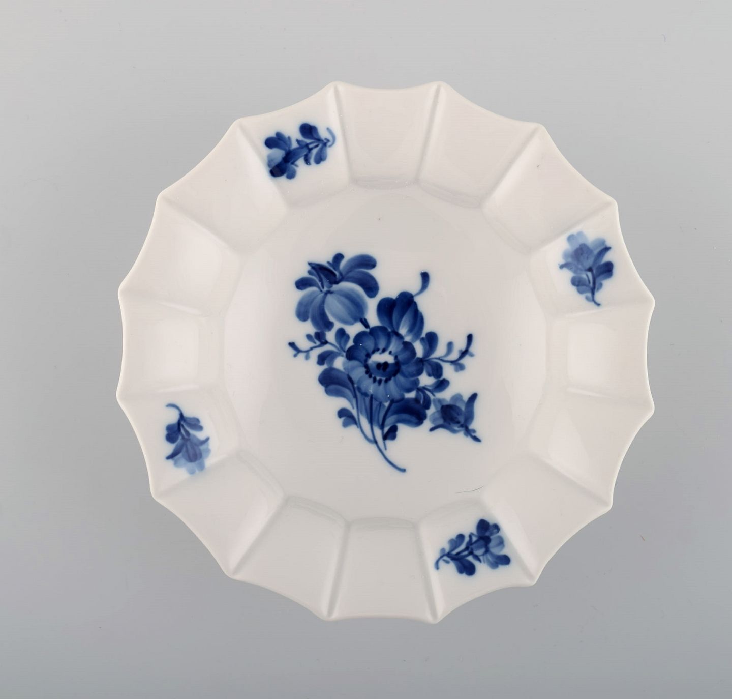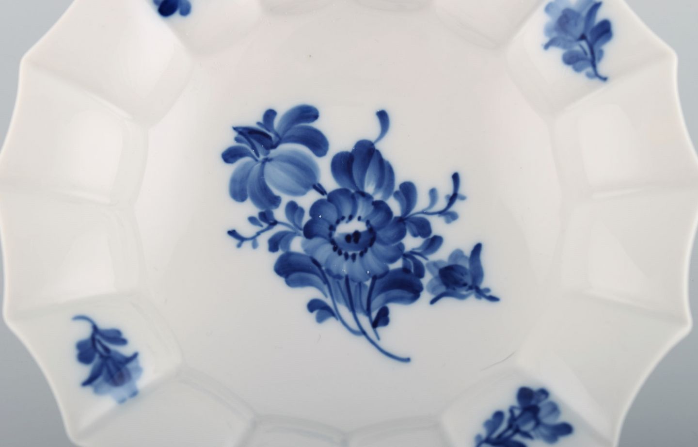Royal Copenhagen Blå Blomst Kantet skål. Modelnummer 10/8556. Dateret 1975-1979.