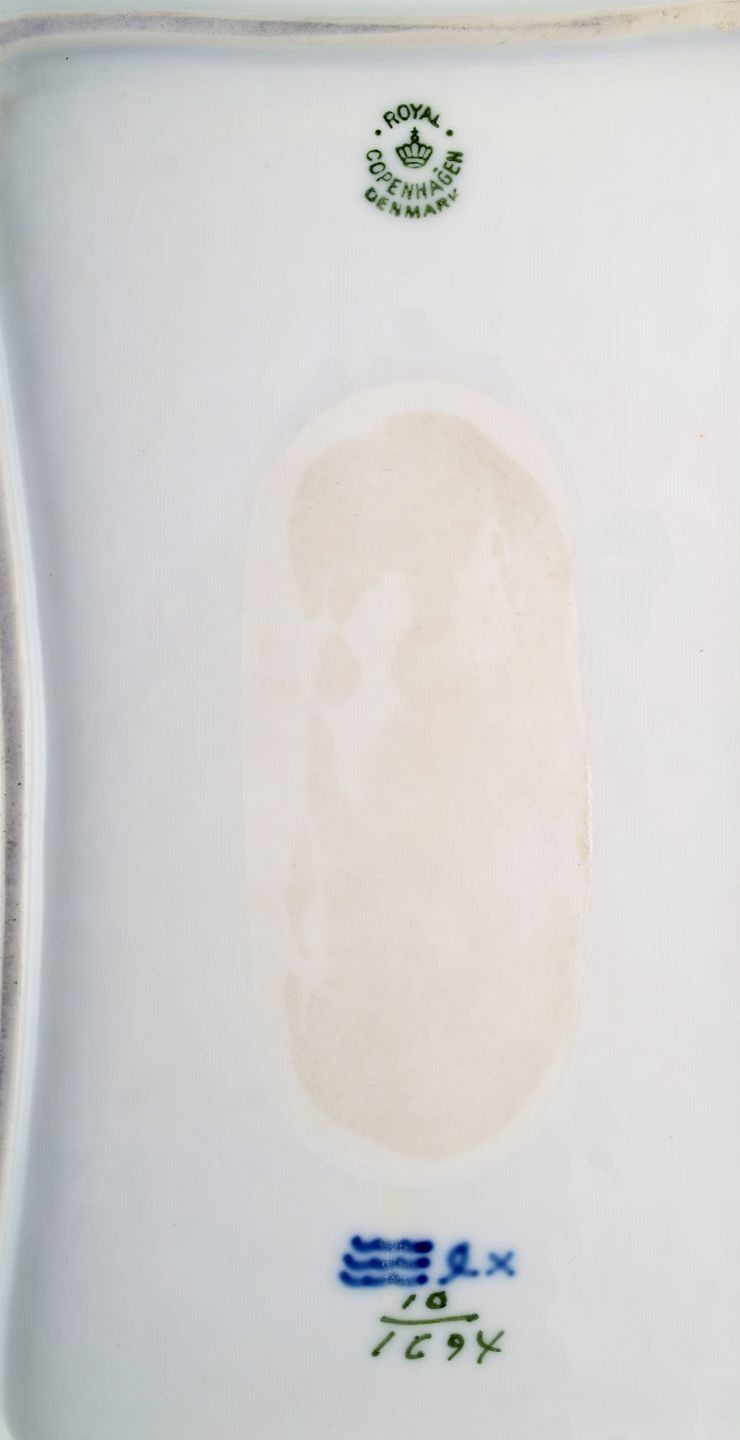 Royal Copenhagen Blå Blomst flettet sukker/fløde sæt på serveringsbakke. Midt 1900-tallet. Sukkerskålen måler: 14,5 x 11,5 cm. Bakken måler: 24,5 x 17 cm. I flot stand. Stemplet. 2. Sortering.