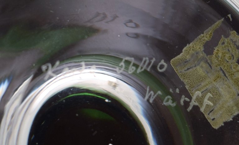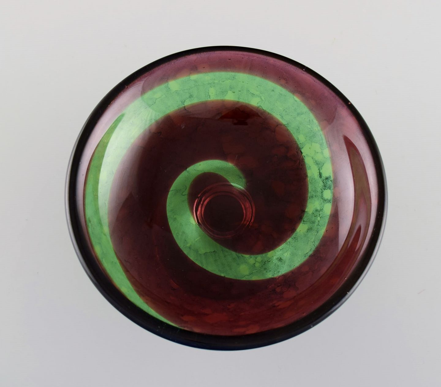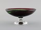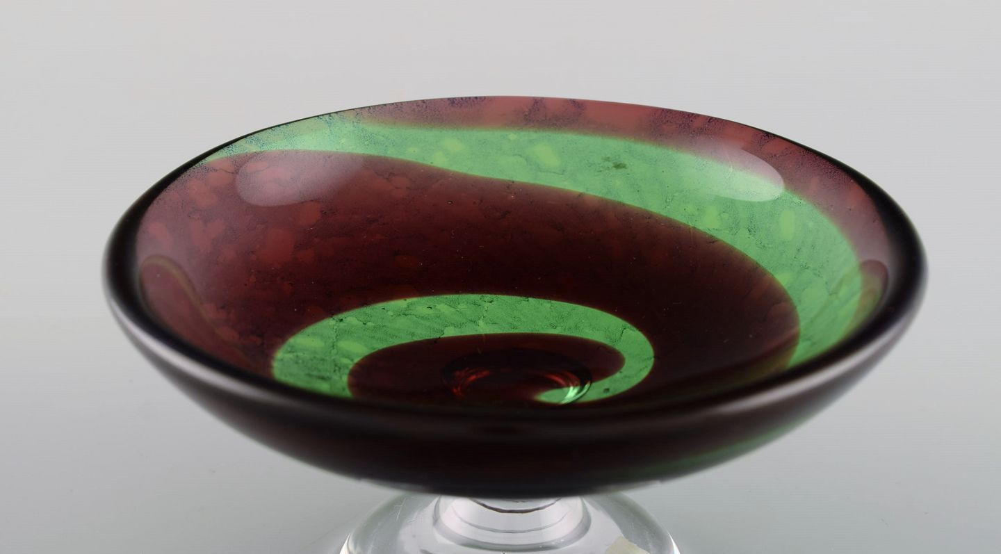 Göran Wärff (f.1933) for Kosta Boda. Skål / opsats i mundblæst kunstglas. Spiral design i røde og grønne nuancer. 1980'erne.