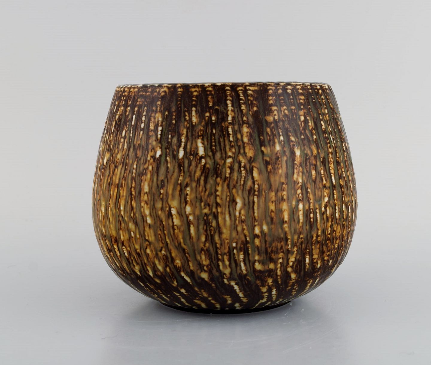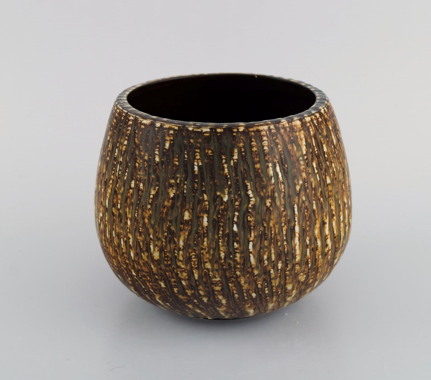 Gunnar Nylund for Rörstrand. To skåle i glaseret stentøj. Smuk birketræs glasur. Midt 1900-talllet. Måler: 17 x 14 cm. I flot stand. Stemplet. 1. Sortering