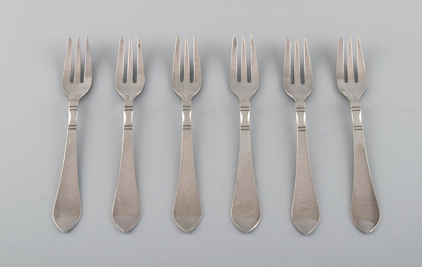 Seks Georg Jensen Antik kagegafler i sterlingsølv.
