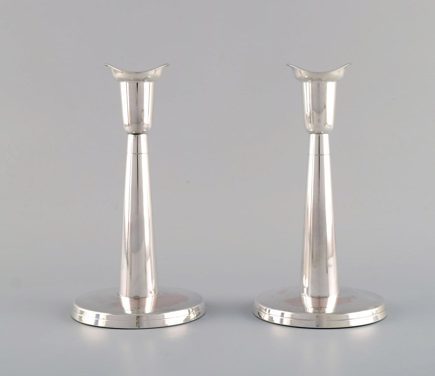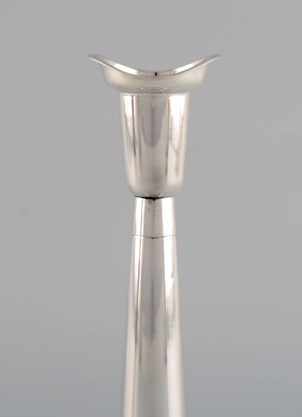 Tore Eldh, svensk sølvsmed. Et par modernistiske stager i sølv. Midt 1900-tallet. Måler: 16 x 8,5 cm. I flot stand. Stemplet.