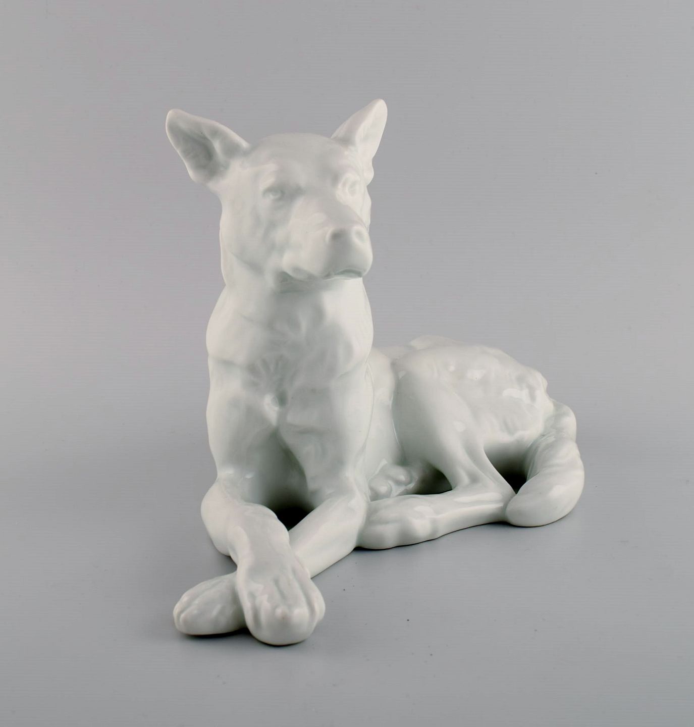 Stor Herend blanc de chine figur. Schæferhund. 1930/40'erne. Måler: 30 x 17,5 cm. I flot stand. Stemplet.