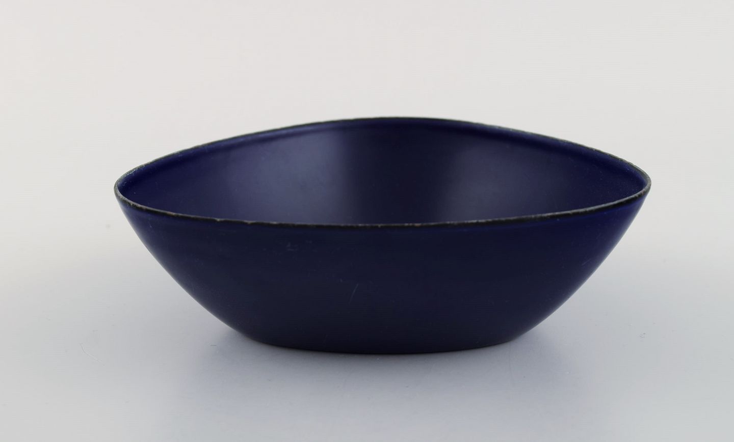 Kockum, Sverige. Tre skåle i mørkeblå og gul emalje. 1970'erne. Måler: 15 x 4,8 cm. I flot stand med brugspræg. Stemplet.