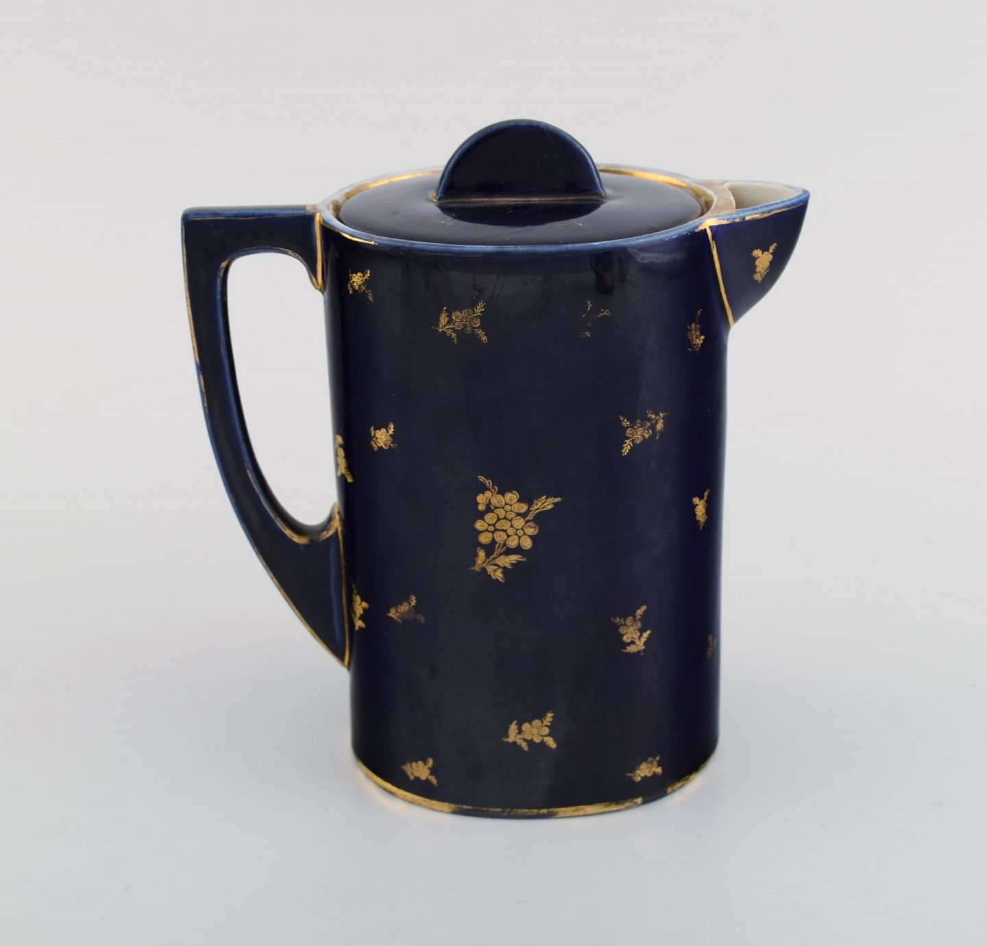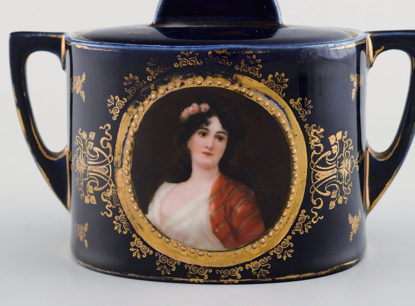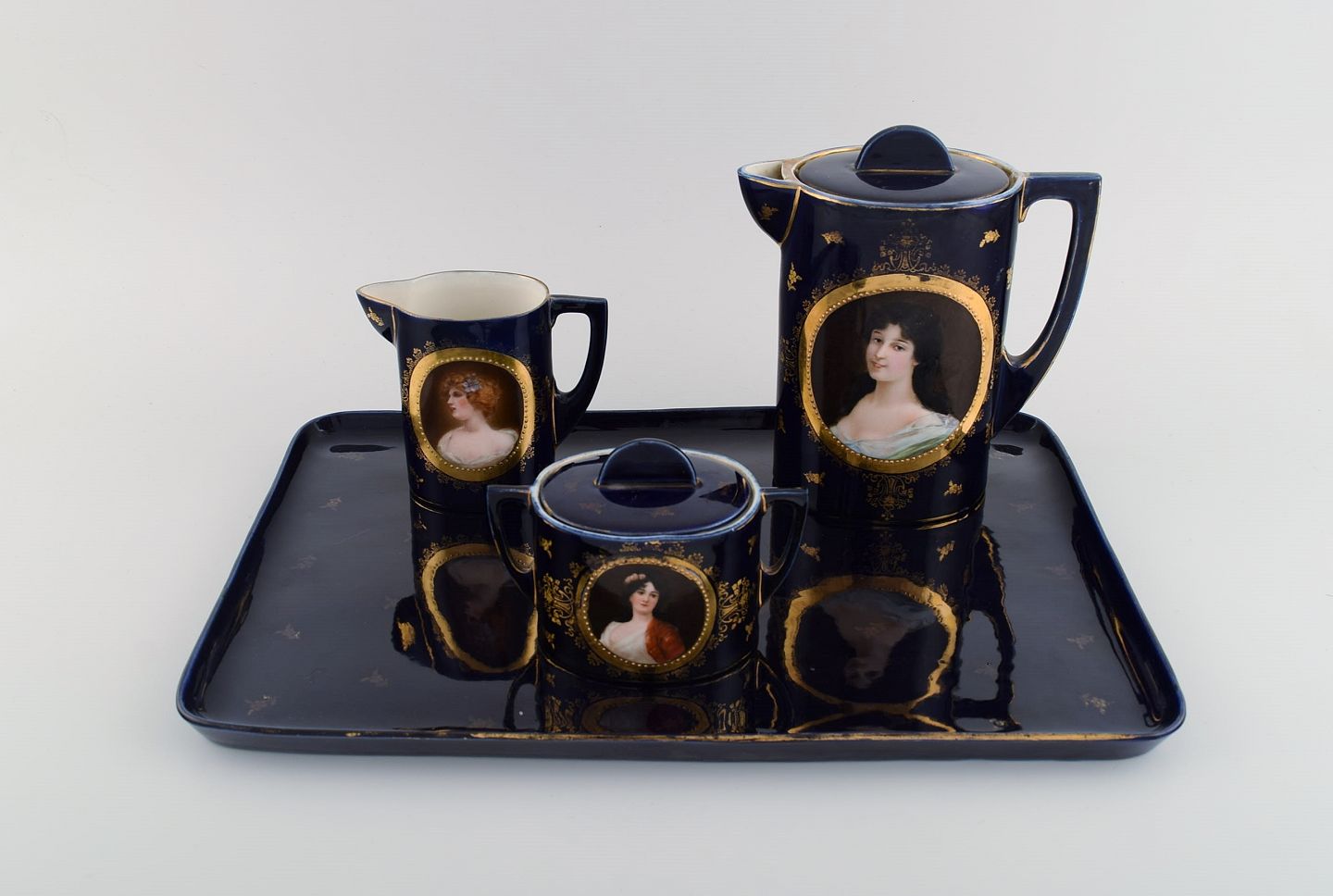 Antique coffee service in hand-painted porcelain with motifs of young women in profile and gold decoration. Vienna, late 19th century.
