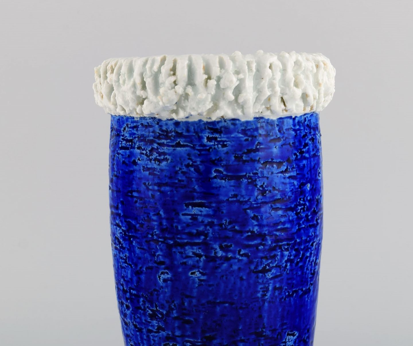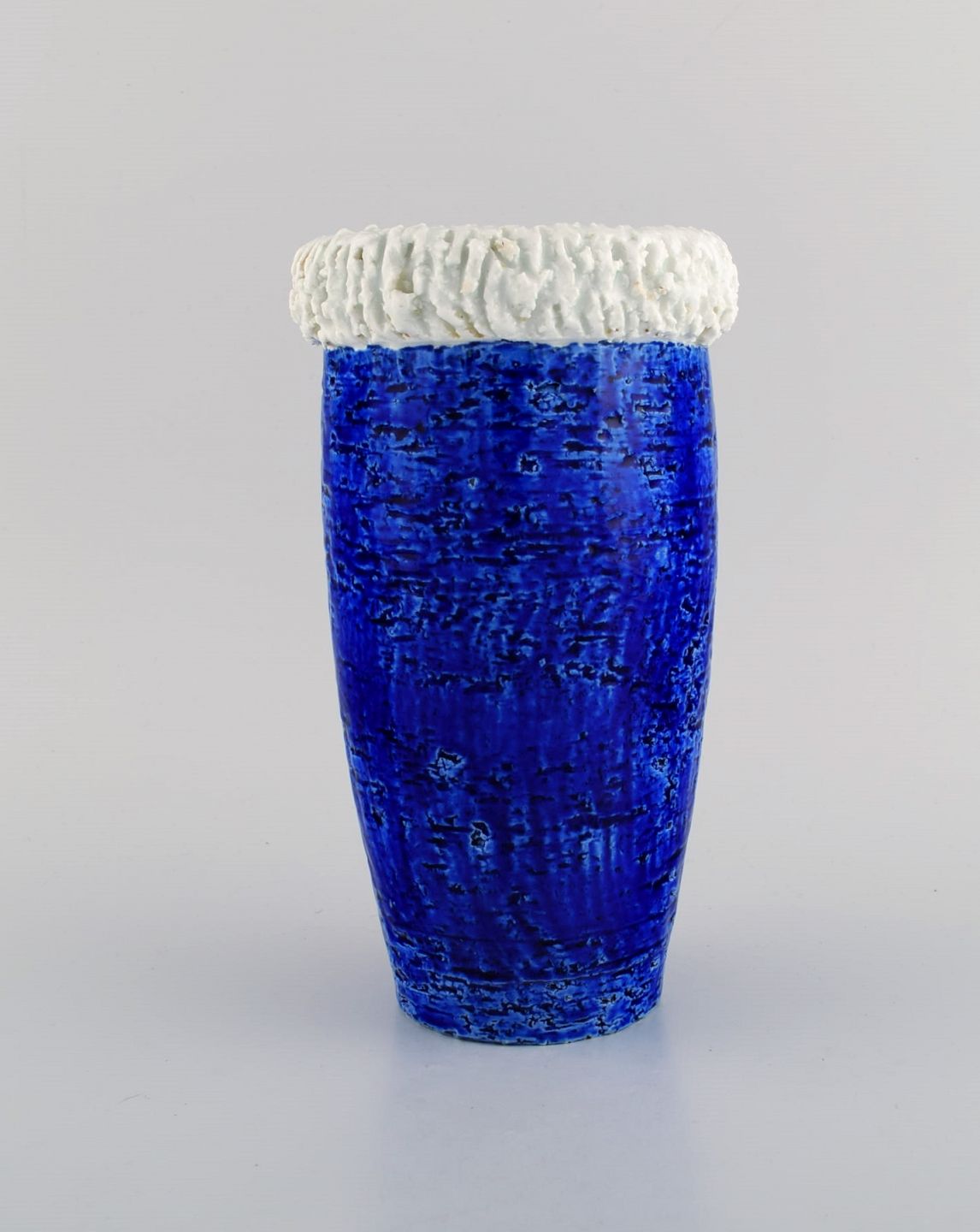 Gunnar Nylund for Rörstrand. Chamotte vase i glaseret keramik. Smuk glasur i blå nuancer. 1950'erne. Måler : 21,5 x 12,5 cm. Stemplet. I flot stand.