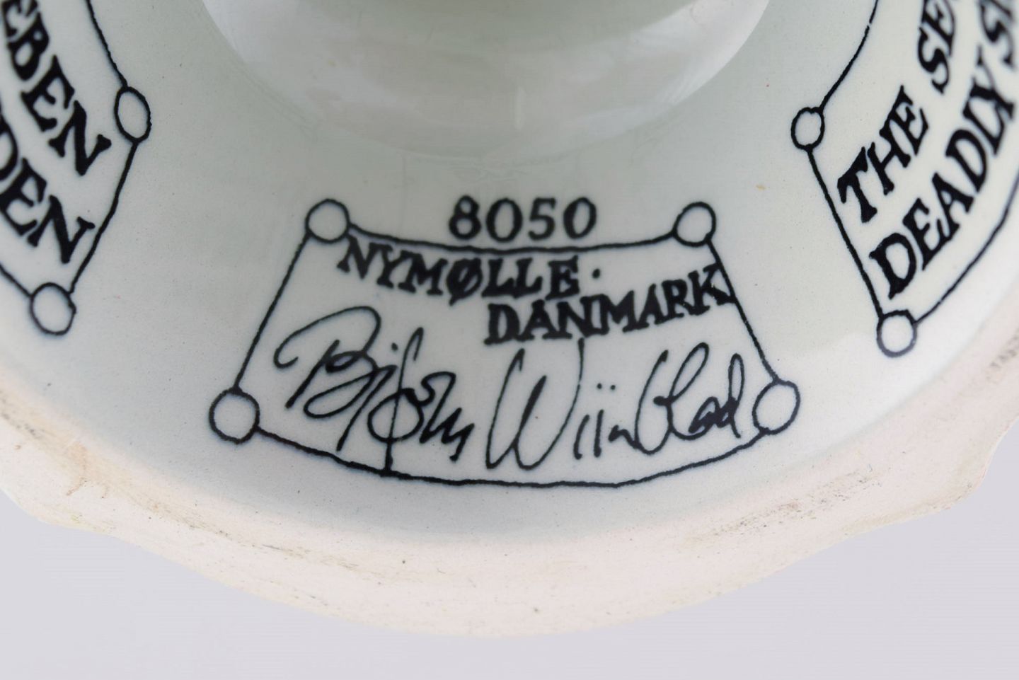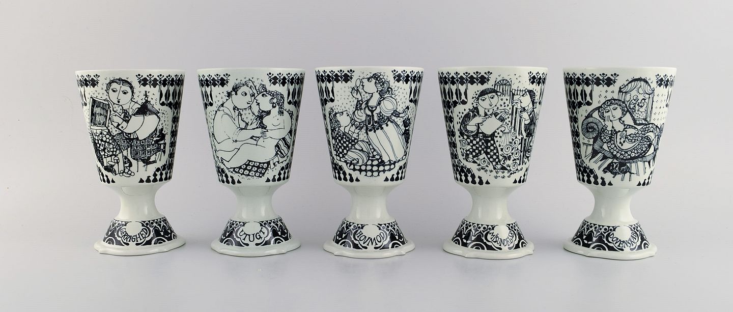 Bjørn Wiinblad for Nymølle. Fem kopper / krus i glaseret fajance. 1970/80'erne. Måler: 16 x 9,7 cm. I flot stand. Stemplet.