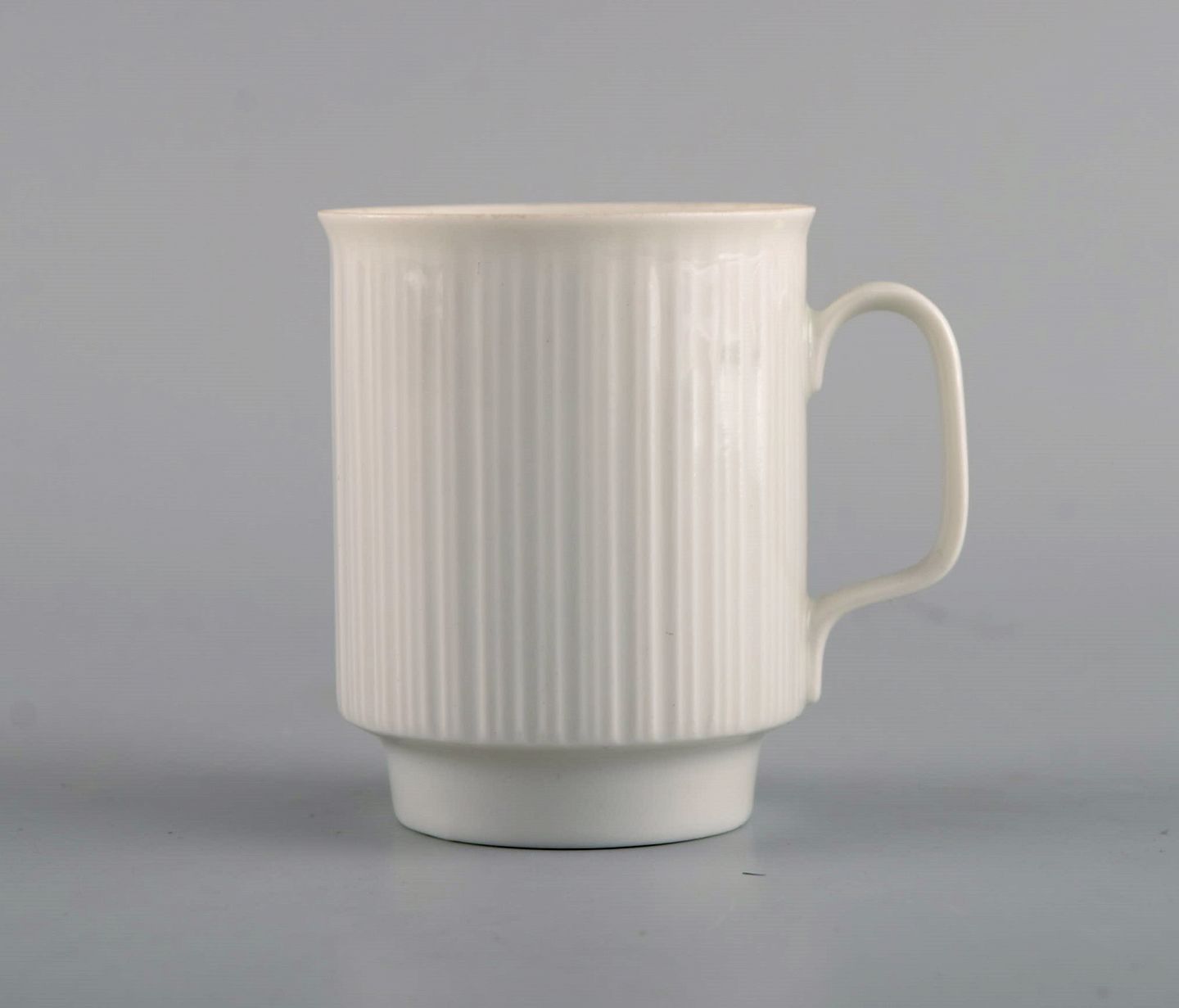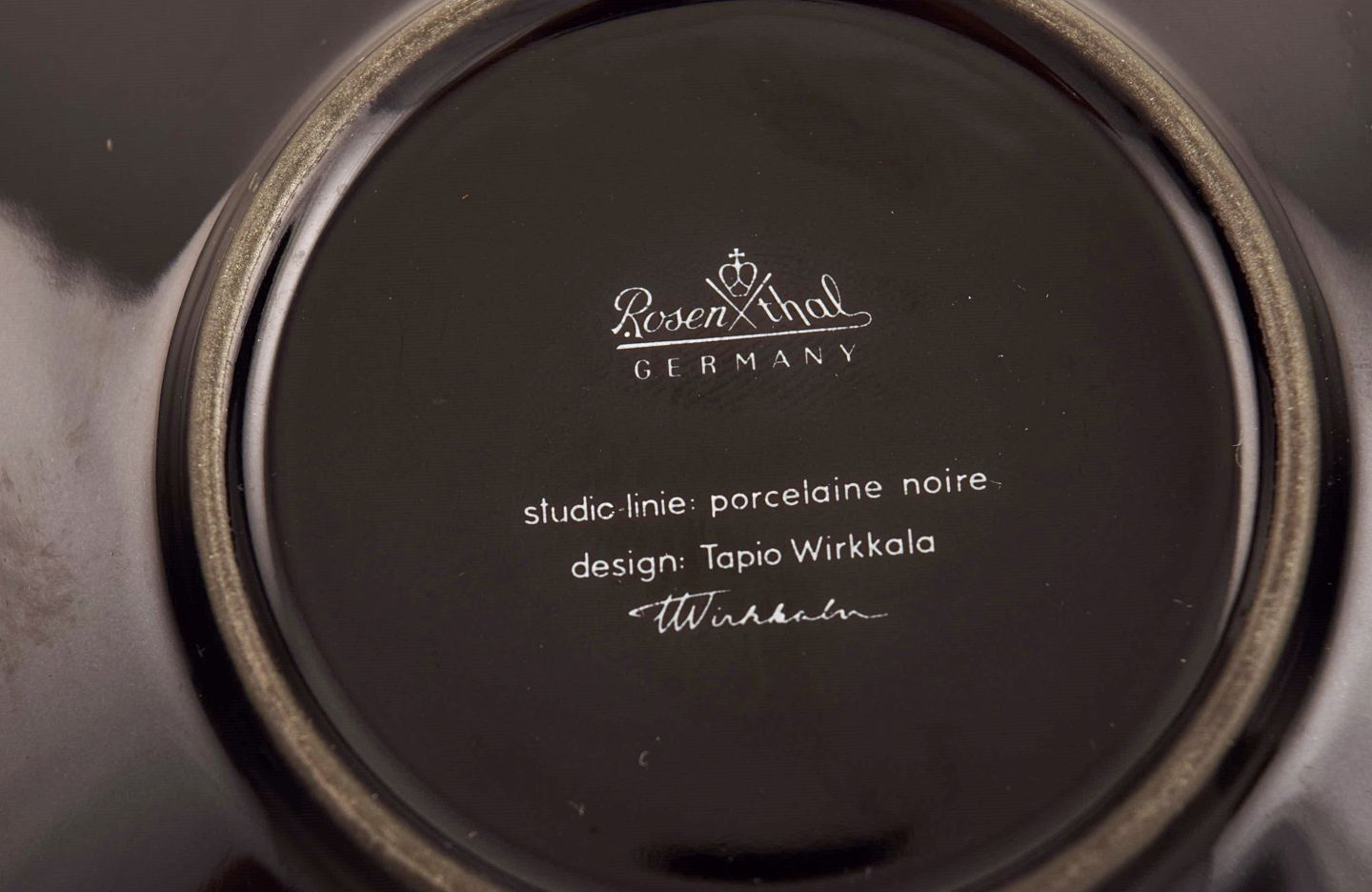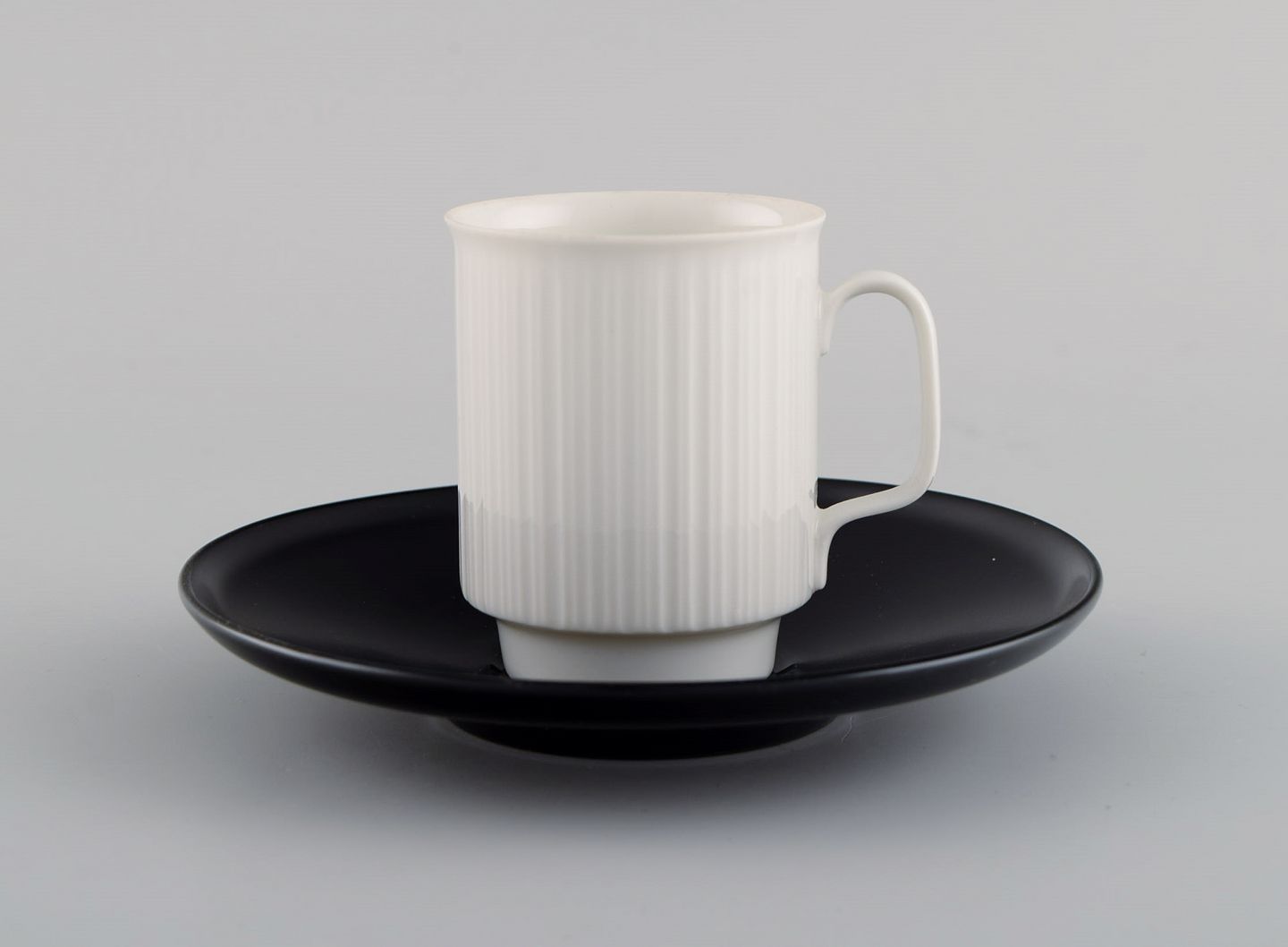 Tapio Wirkkala for Rosenthal. Tre porcelaine noire mokkakopper med underkopper i sort / hvidt riflet porcelæn. 1980'erne.