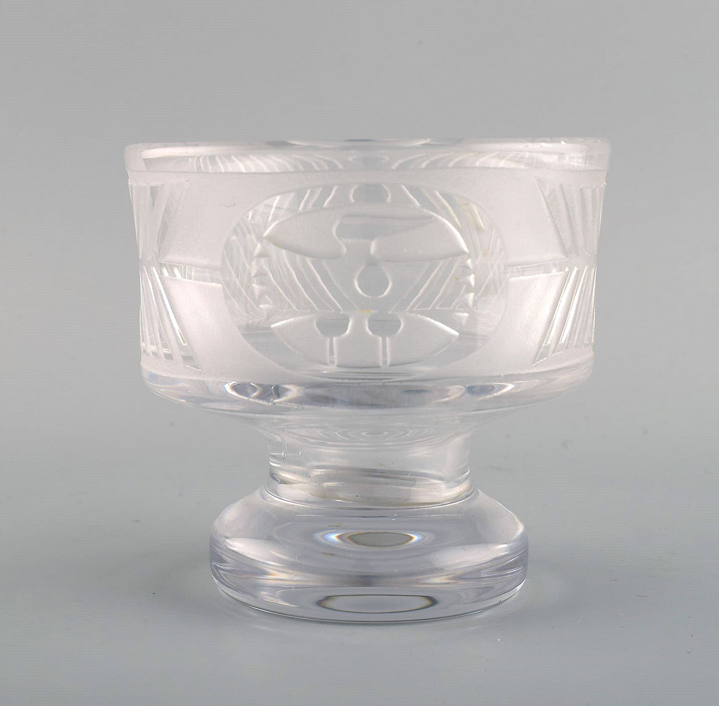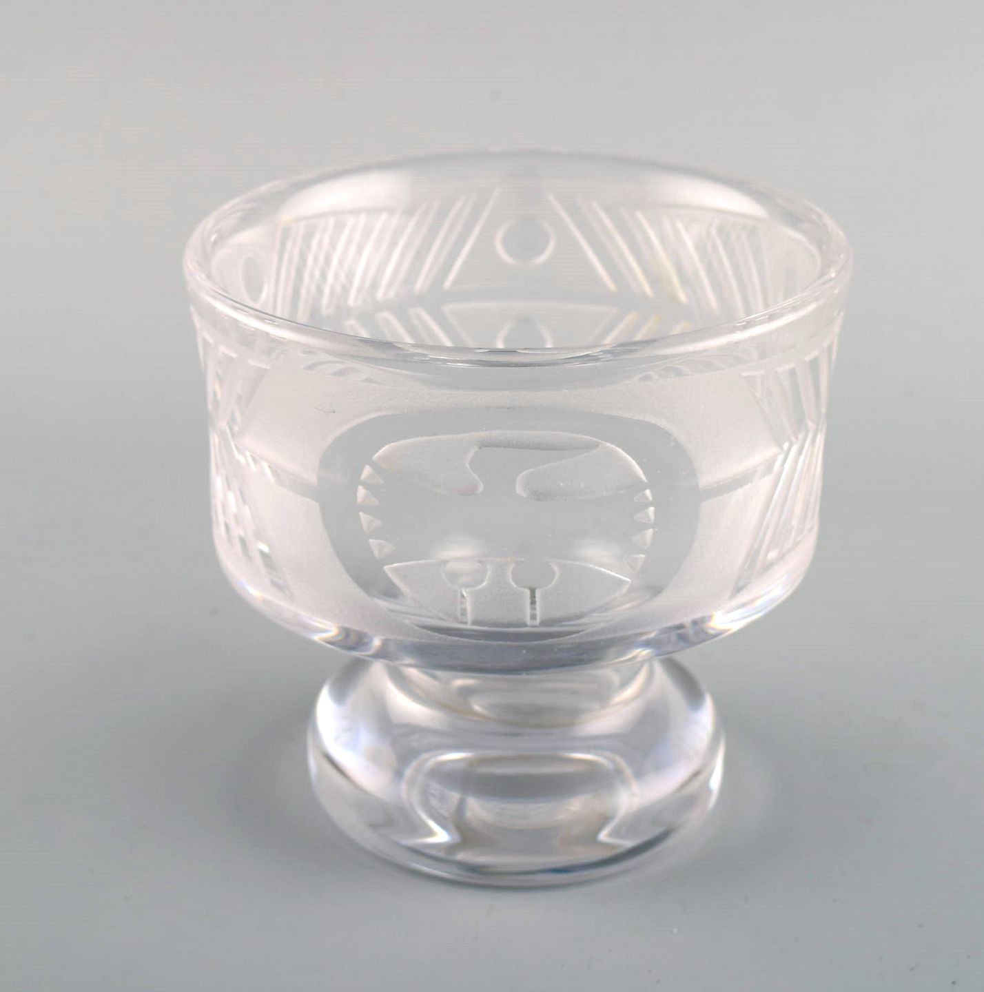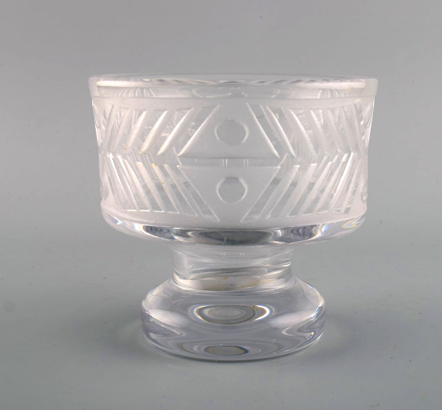 Bertil Vallien for Boda Åfors. Skål på fod i klart kunstglas. Svensk design, 1970/80'erne. Måler: 13,5 x 12,7 cm. I flot stand. Signeret.