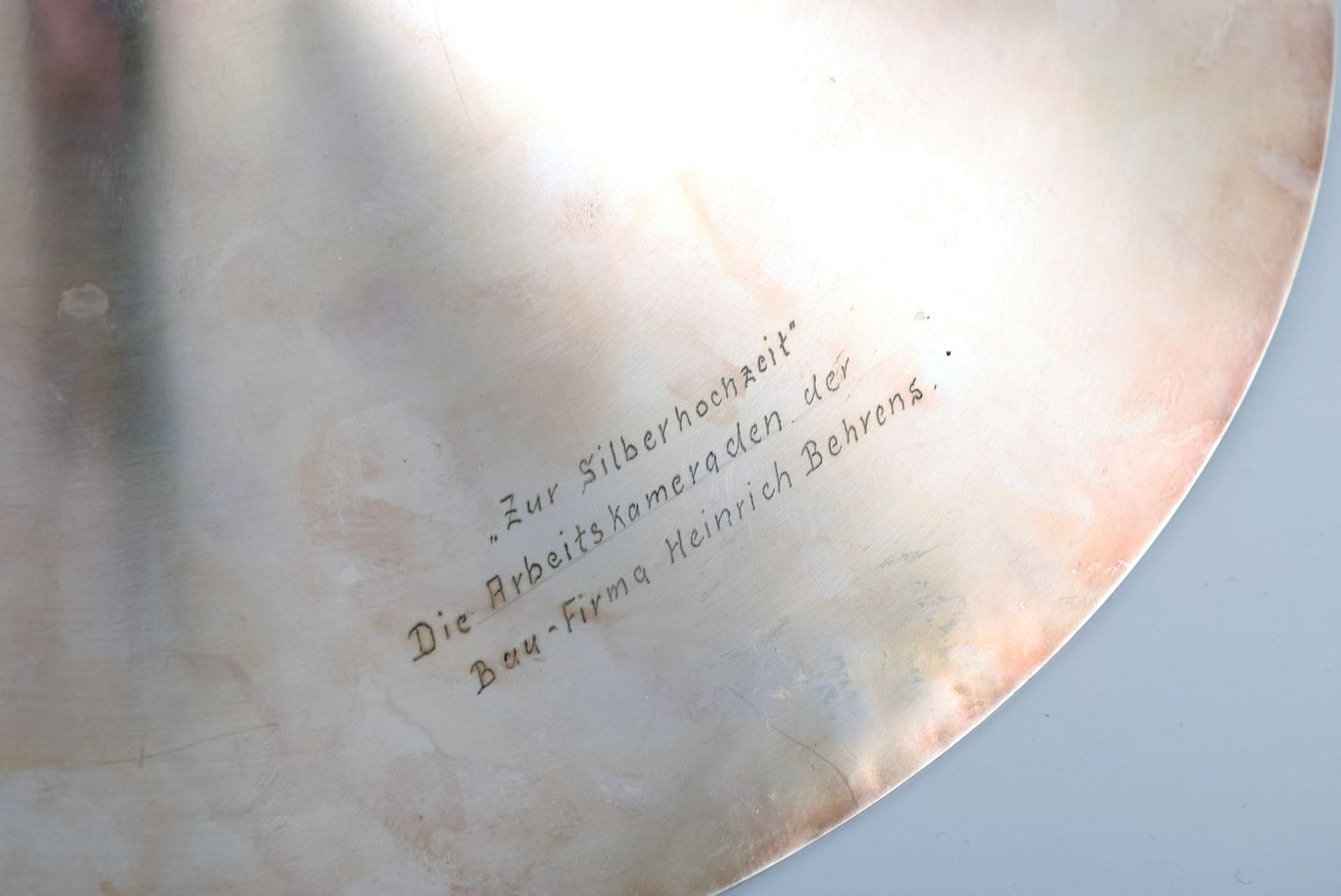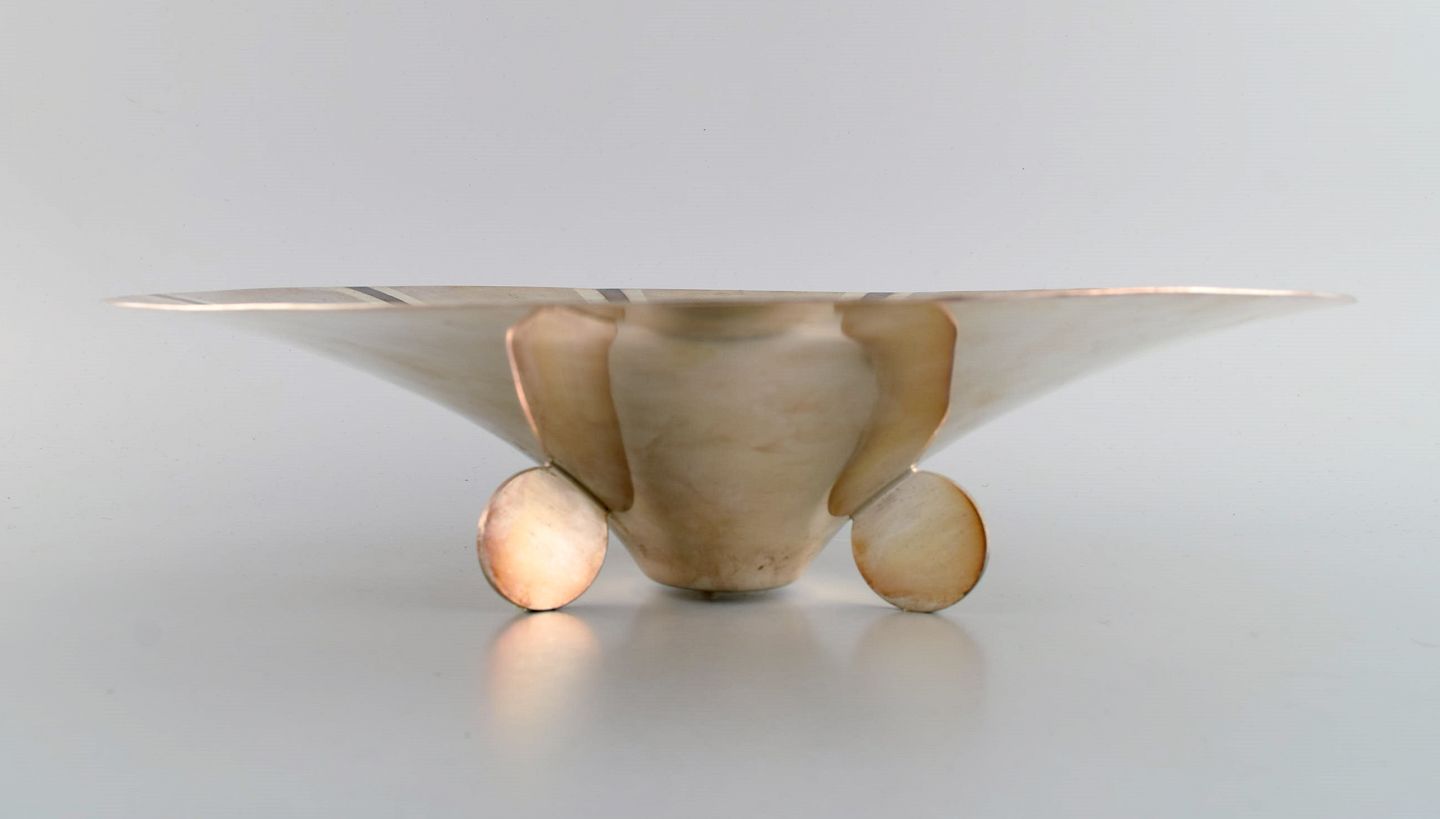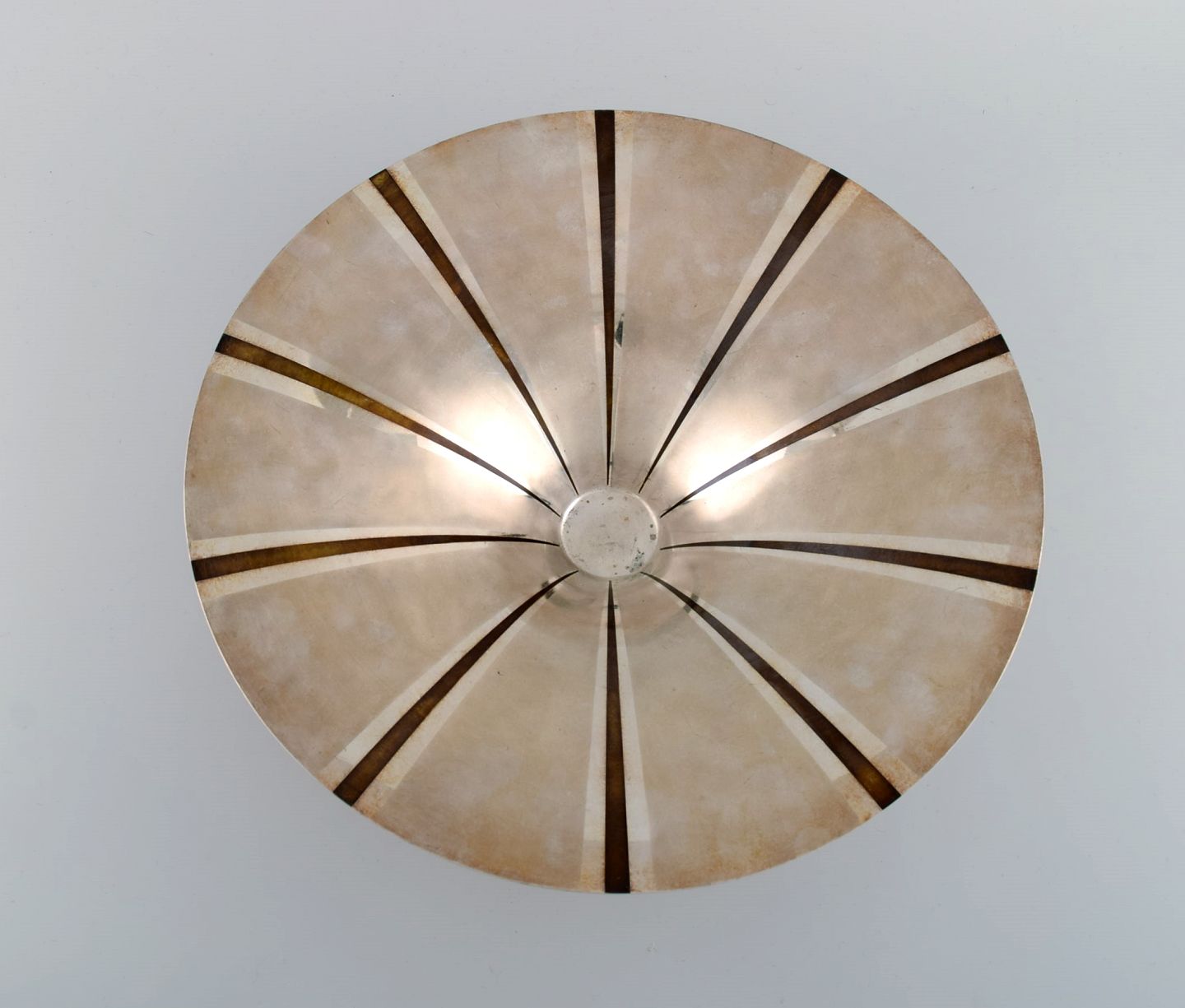 WMF, Tyskland. Stor art deco Ikora skål på trefod i nysølv indlagt med messing. 1940'erne.