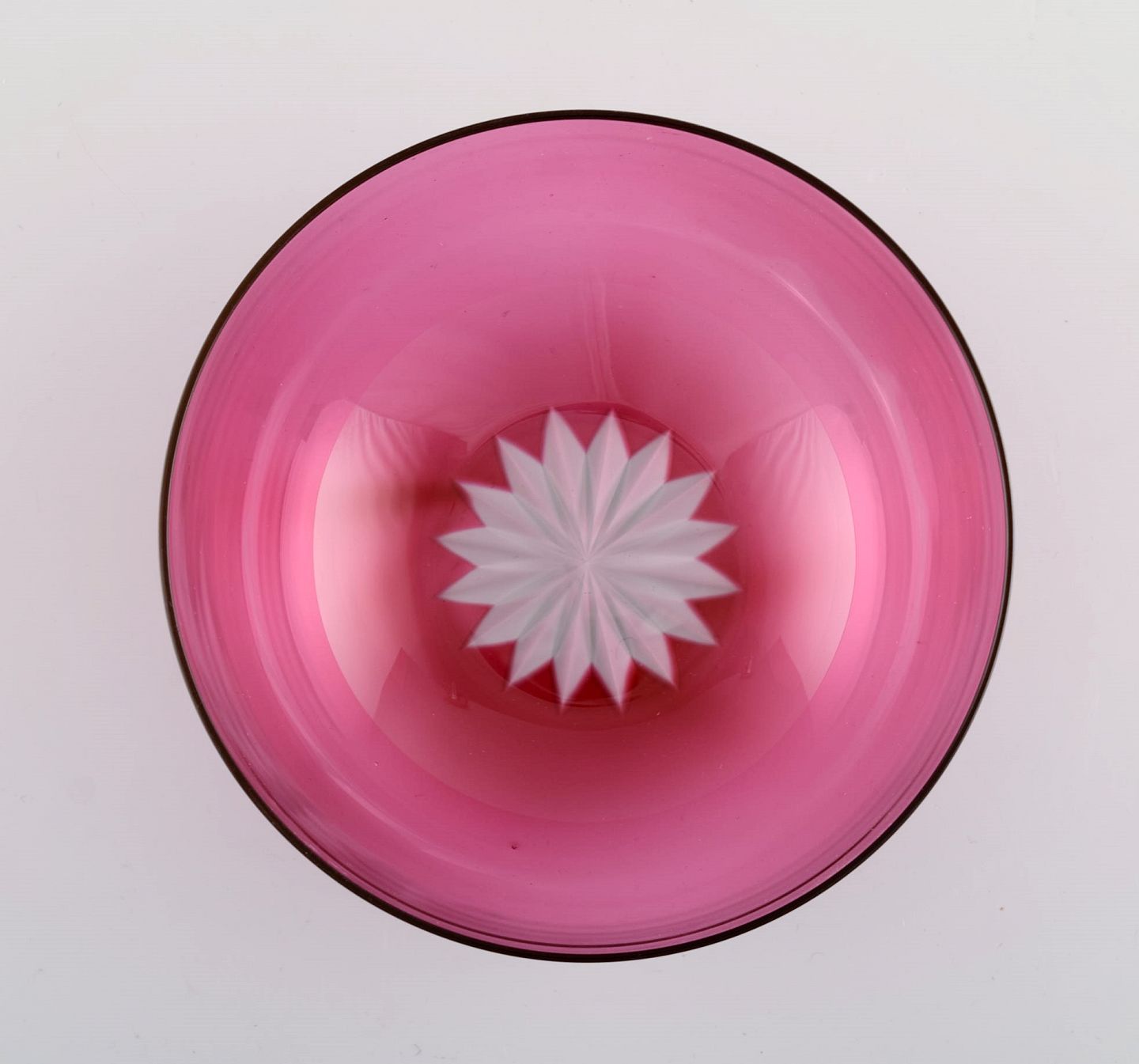 Sæt på tolv Holmegaard skåle i lyserødt kunstglas. Dansk design, midt 1900-tallet. Måler: 12,5 x 6,5 cm. I flot stand.