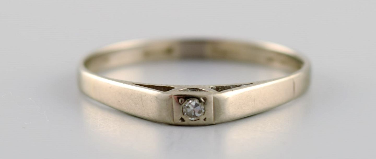 Swedish jeweler. Vintage ring in 18 carat white gold adorned with diamond. Mid-20th century.