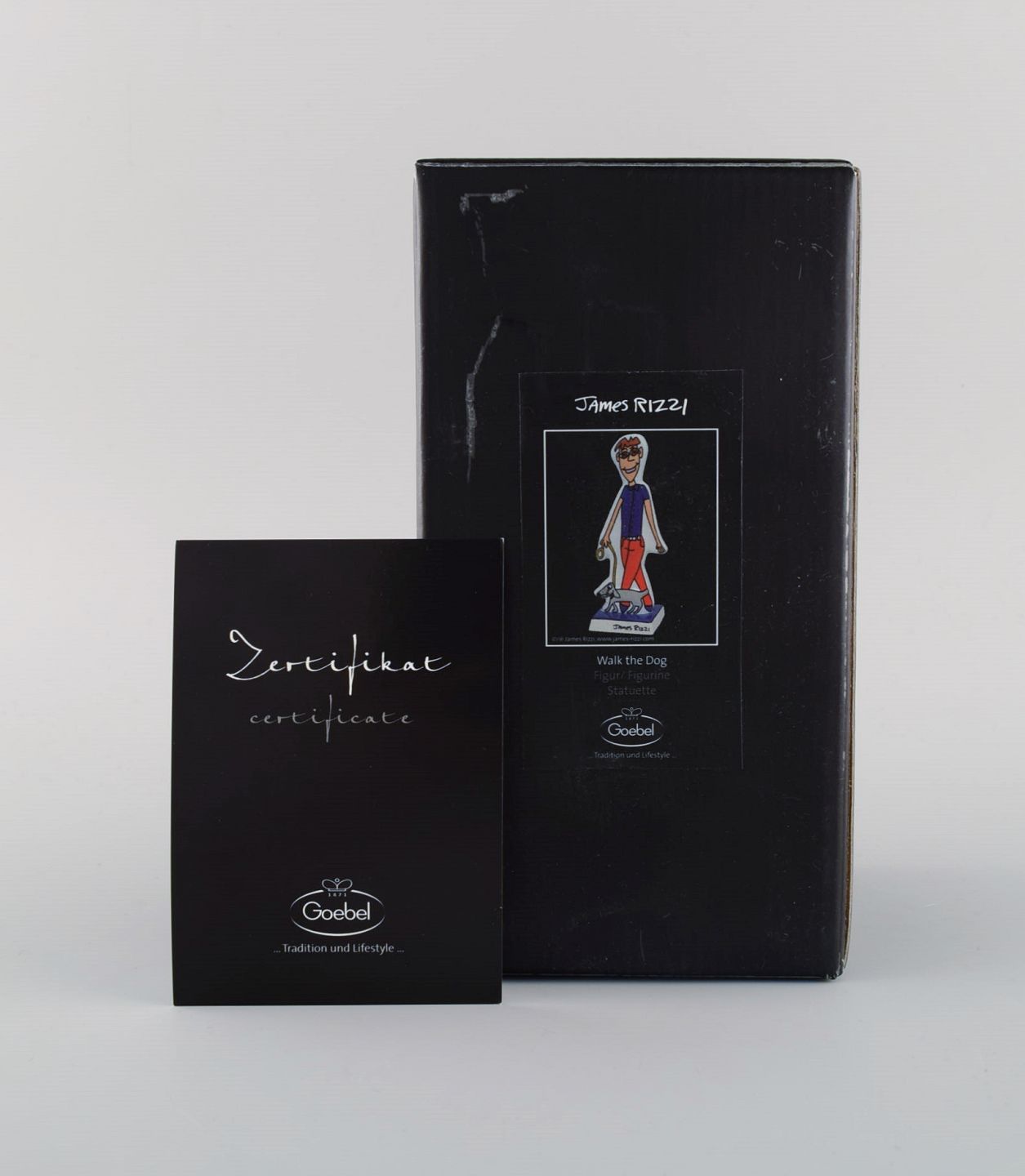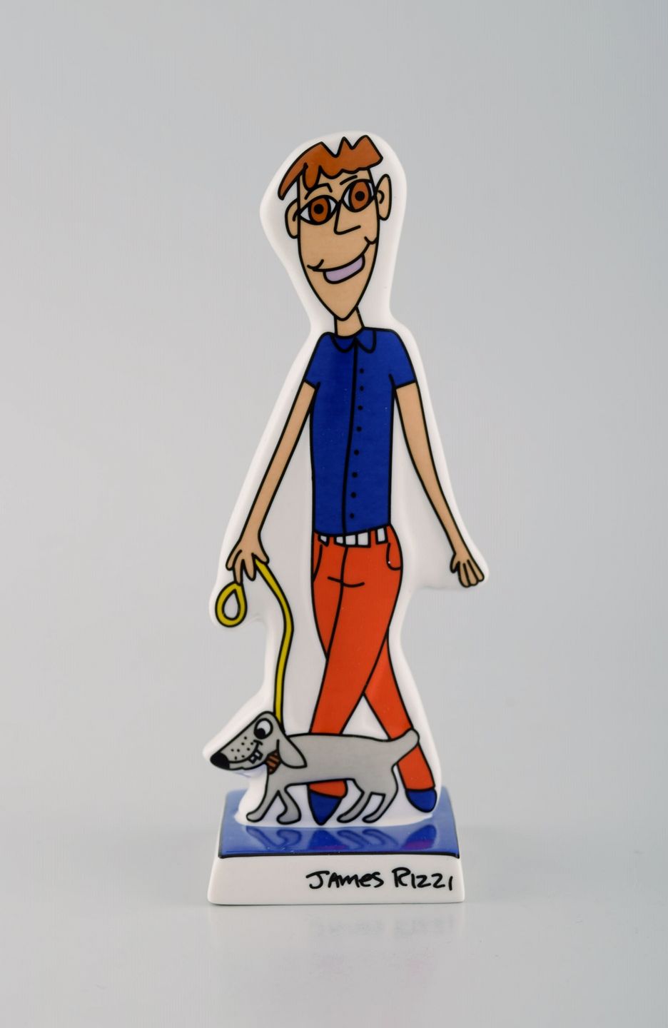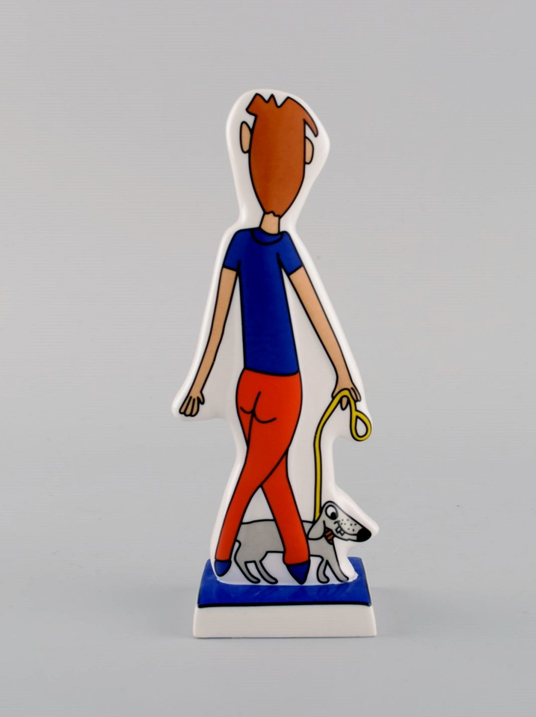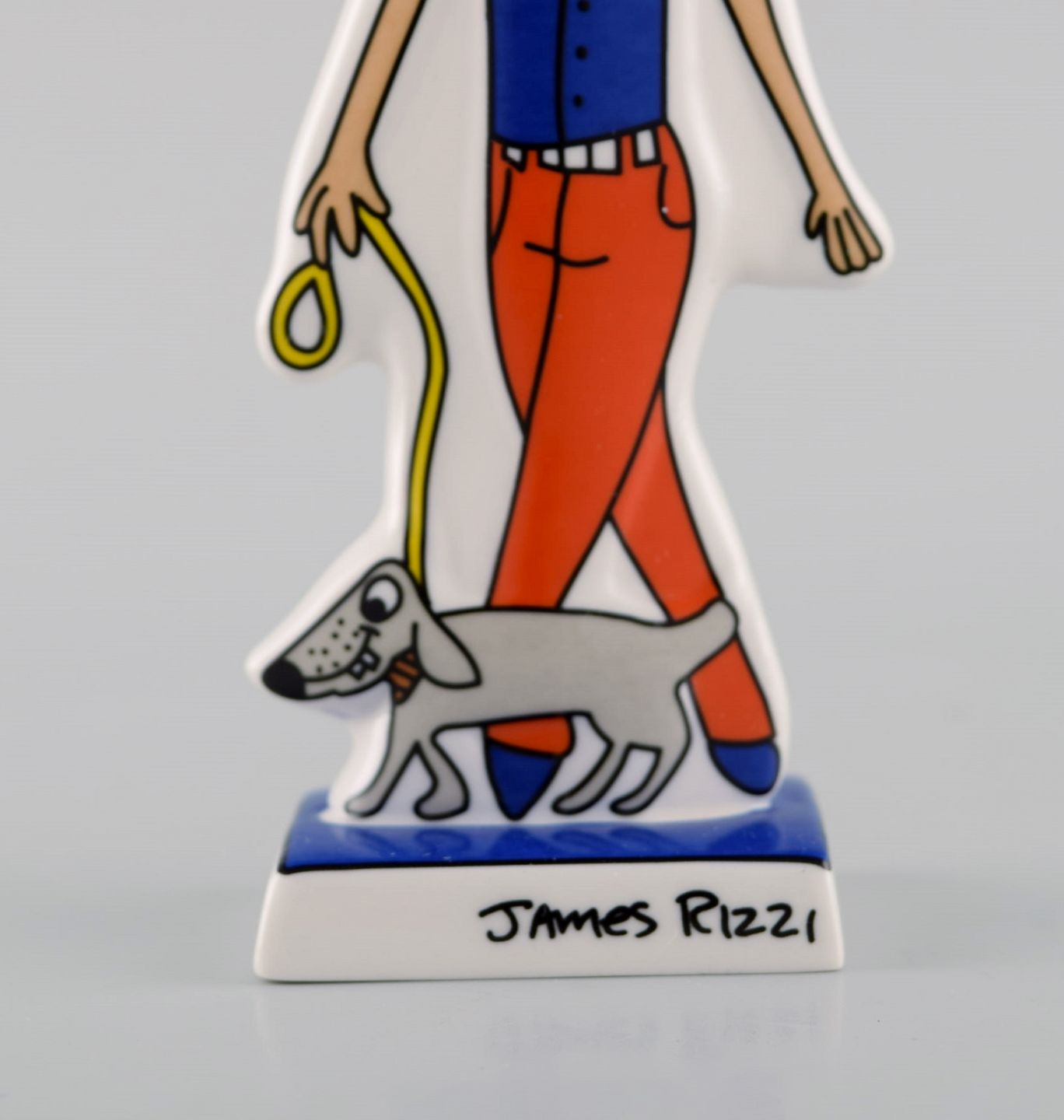 James Rizzi (1950-2011), for Goebel. Pop art porcelænsfigur. Walk the dog. 21. Århundrede.