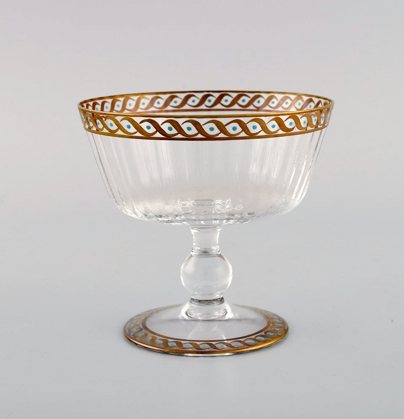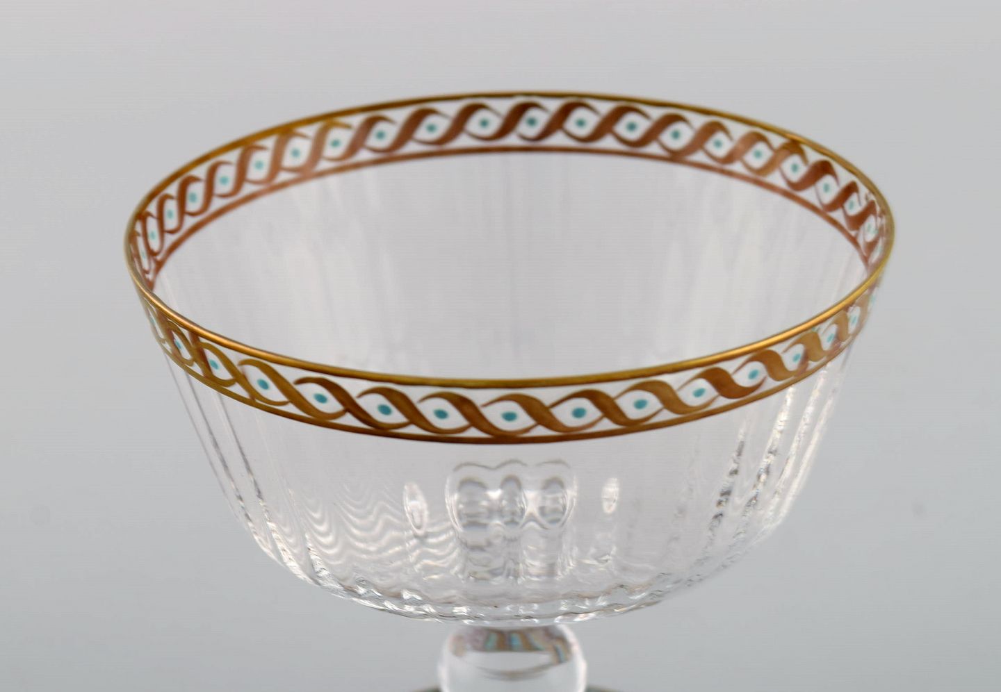 Nason & Moretti, Murano. 11 champagneskåle i mundblæst kunstglas med håndmalet turkis og gulddekoration. 1930'erne. Måler: 10,5 x 9,5 cm. I flot stand.
