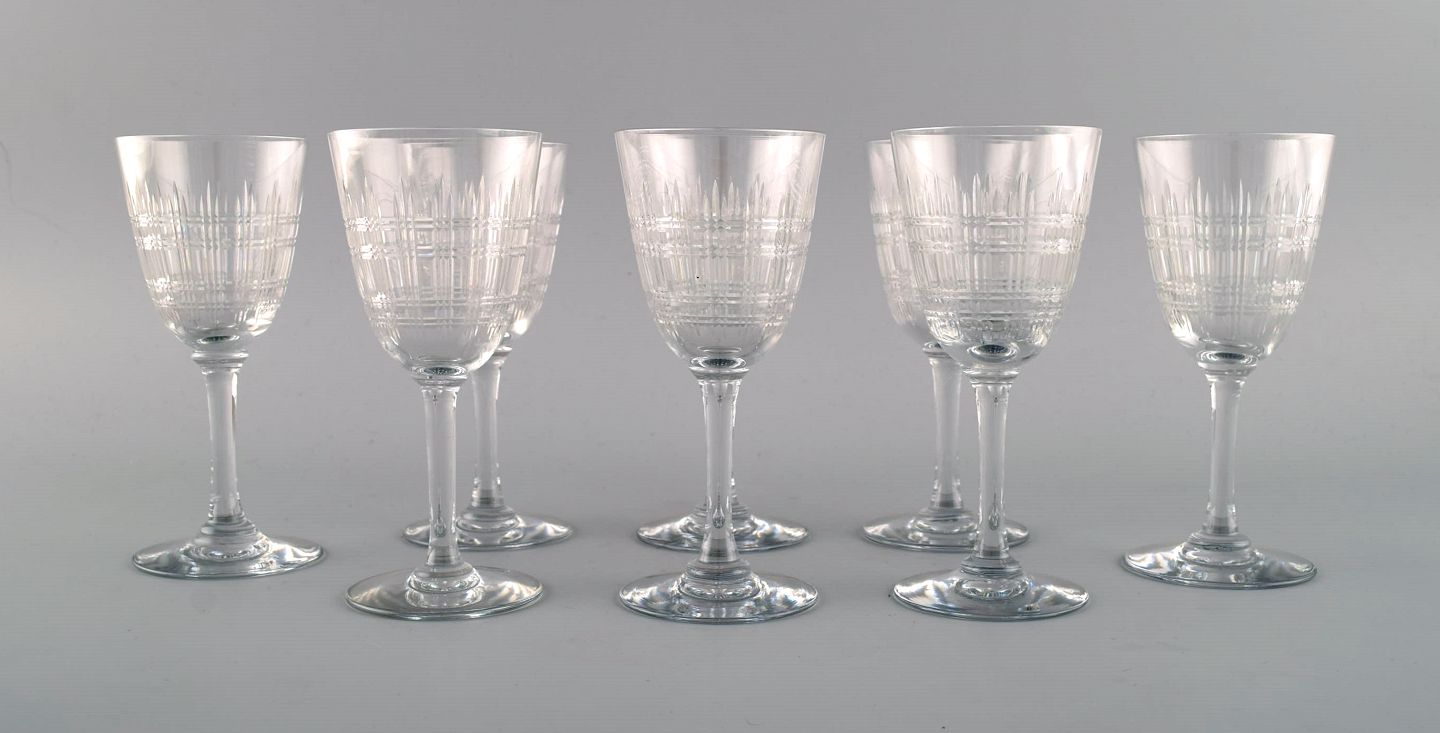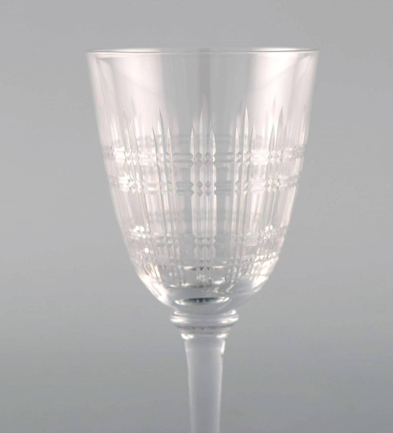 Baccarat, Frankrig. Otte art deco Cavour hvidvinsglas i mundblæst krystalglas. 1920/30'erne.