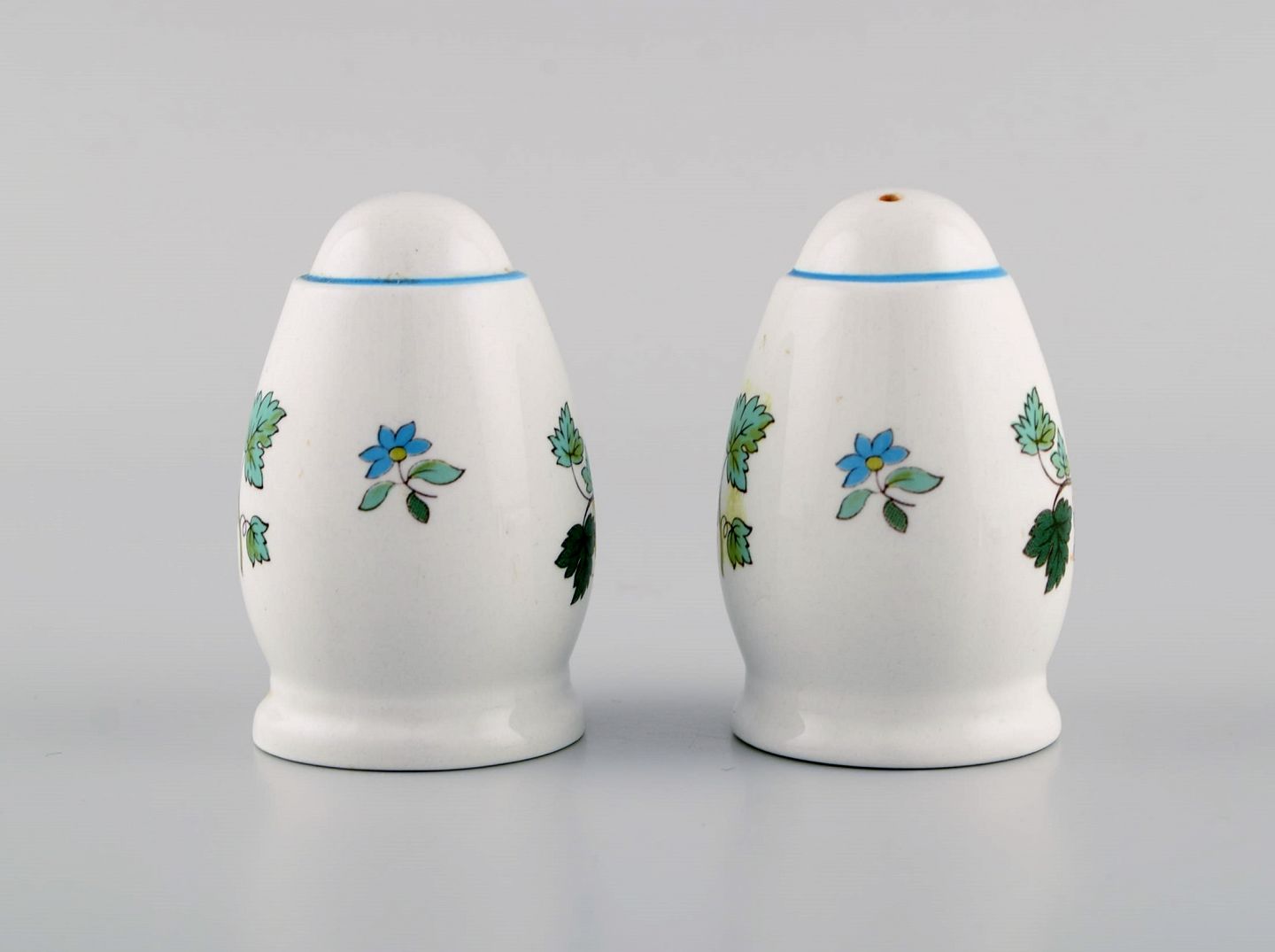Spode, England. Fire Mulberry æggebægre, kaviarskåle og salt / peberbøsse i håndmalet porcelæn. 1960/70'erne.