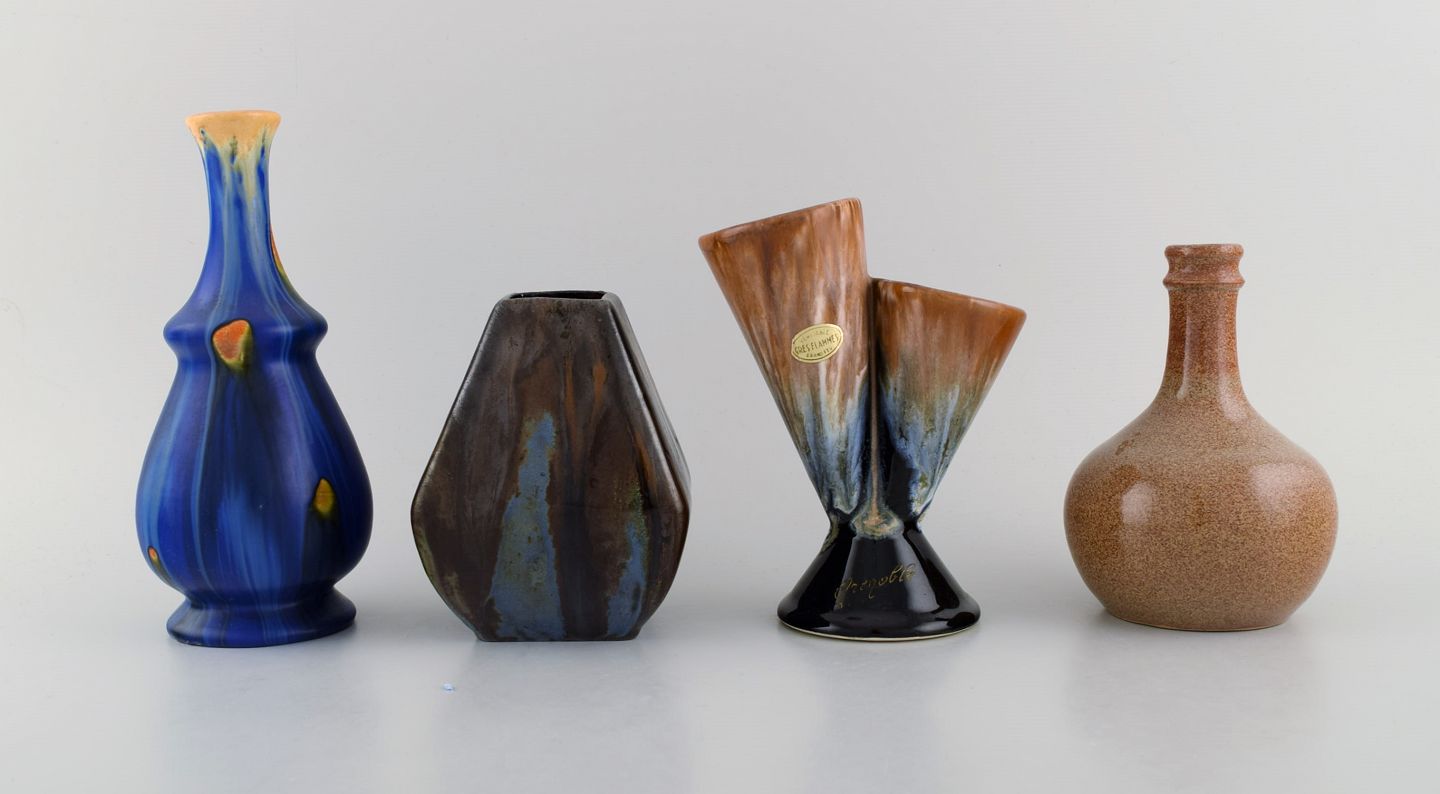 Fire retro vaser i glaseret keramik. Belgien, 1960/70'erne.