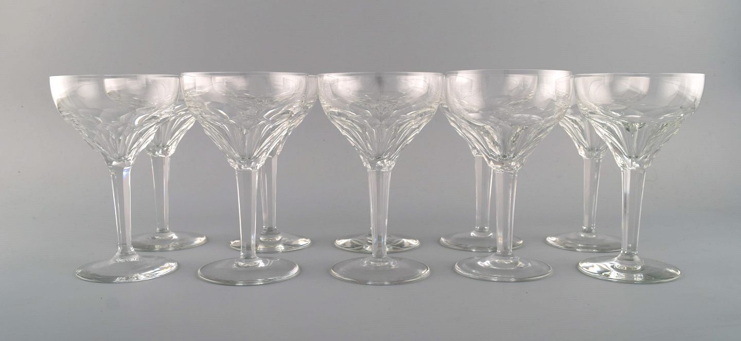 Val St. Lambert, Belgien. Ti rødvinsglas i klart mundblæst krystalglas. 1930'erne. Måler: 15,6 x 9,8 cm I perfekt stand.