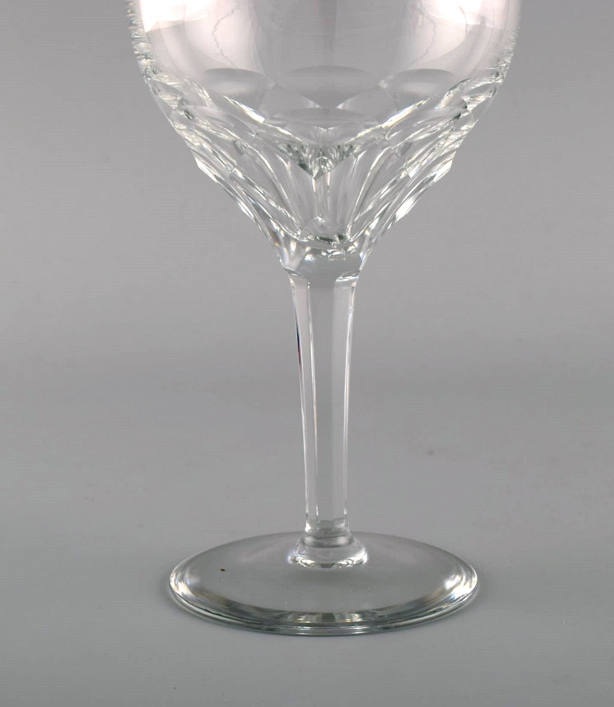 Val St. Lambert, Belgium. Nine red wine glasses in clear mouth-blown crystal glass. 1930s. Measures: 16.3 x 10 cm In perfect condition.
