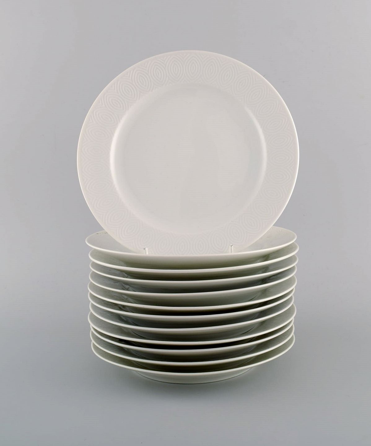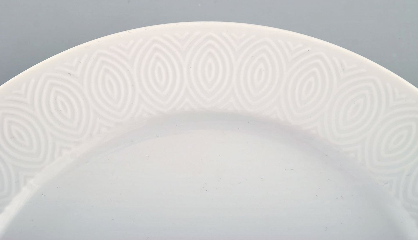 Royal Copenhagen. Salto Stel, Hvidt. Tolv frokosttallerkener. 1960'erne.