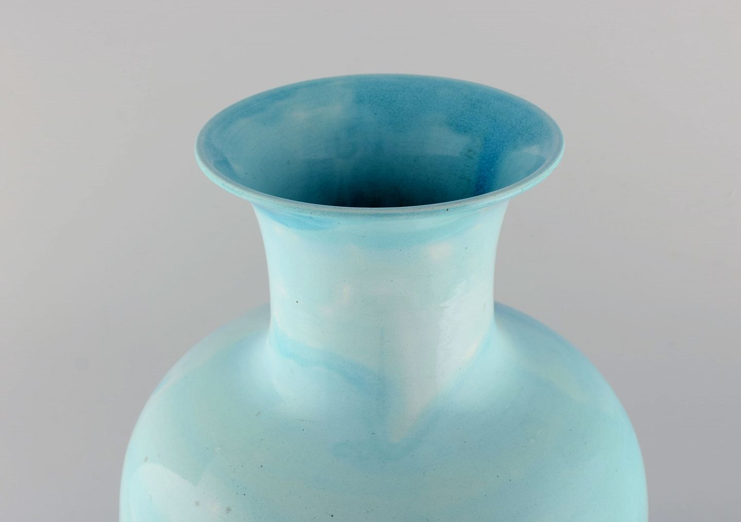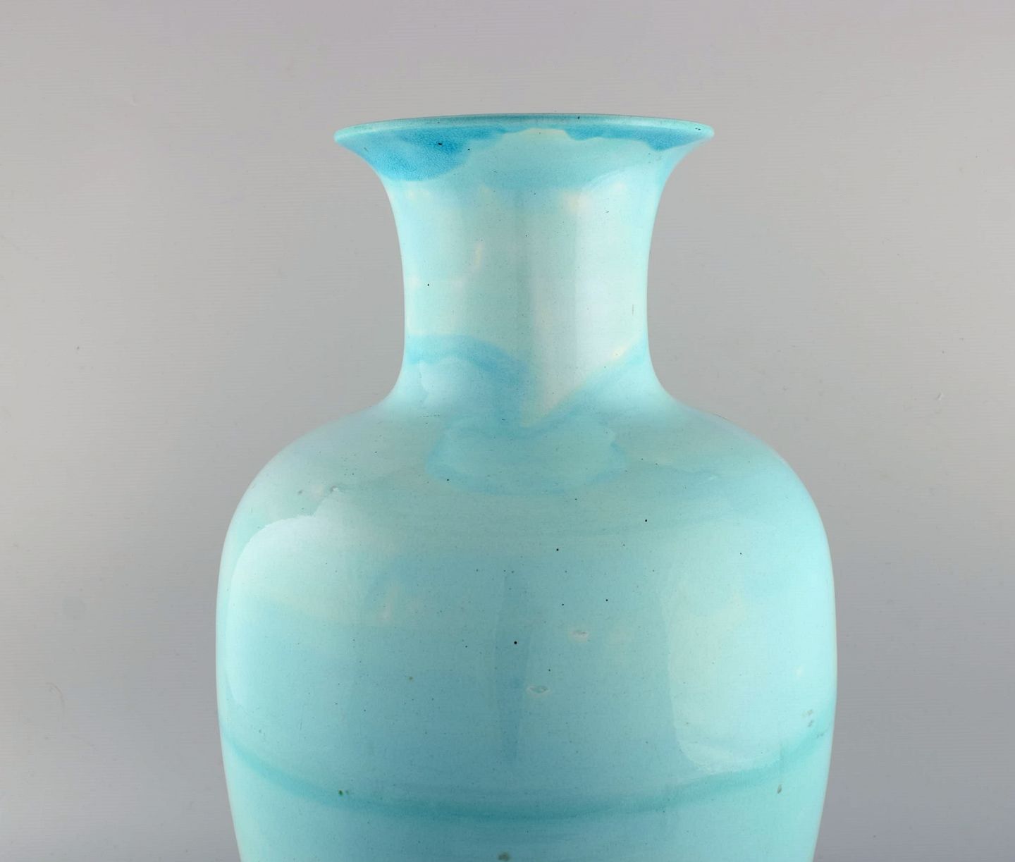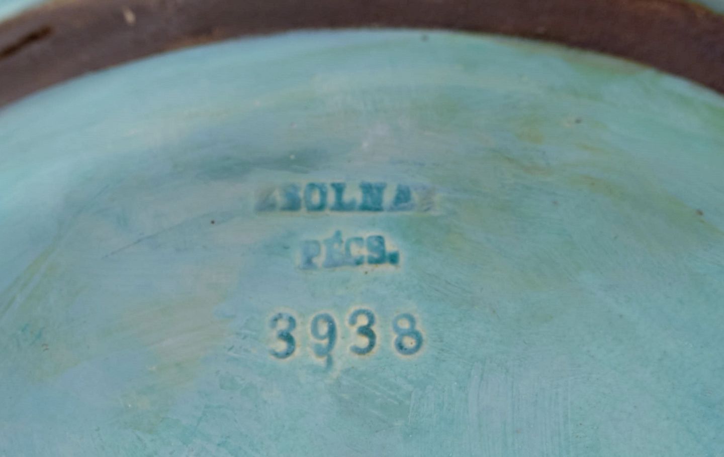 Gigantisk antik Zsolnay gulvvase i glaseret keramik. Smuk glasur i turkis nuancer. Dateret 1891-1895. Måler: 50 x 27 cm. I flot stand. Lille revne i glasuren fra produktionen. Stemplet.