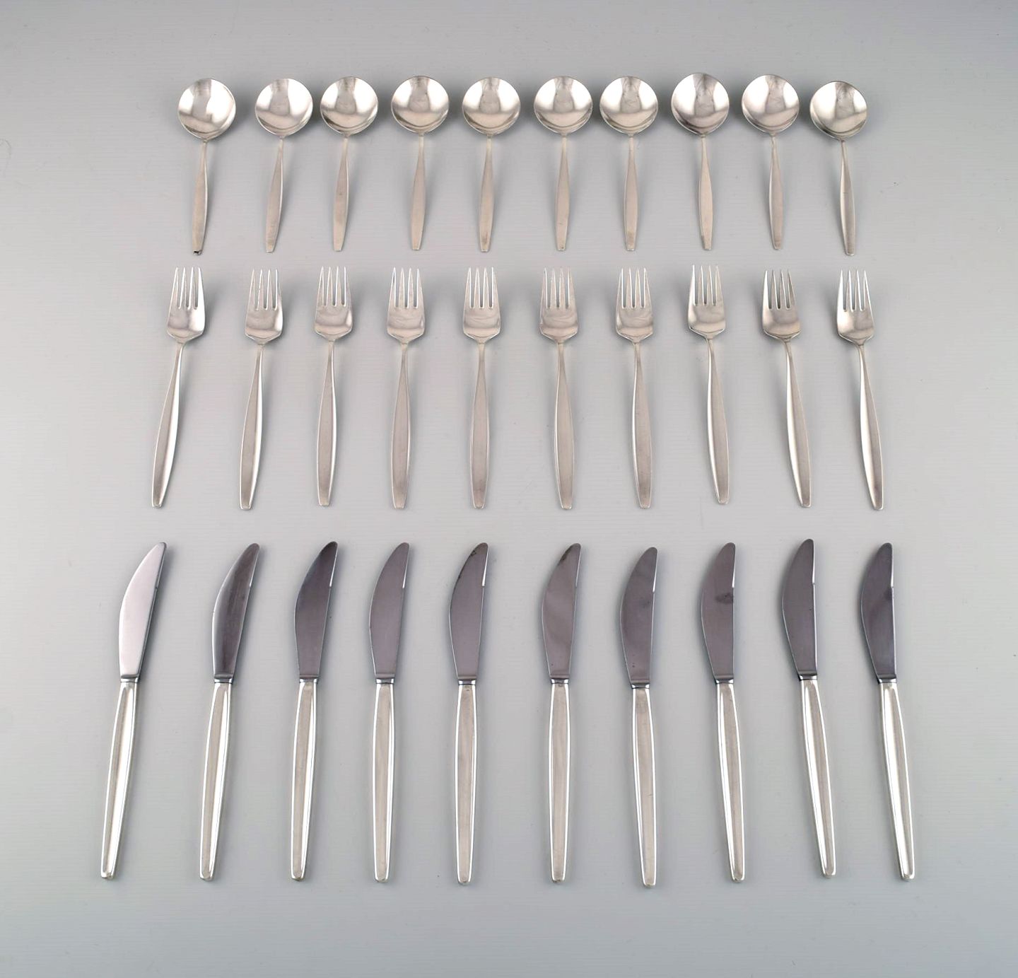 Bestående af ti frokostgafler, ti frokostknive og ti boullionskeer.