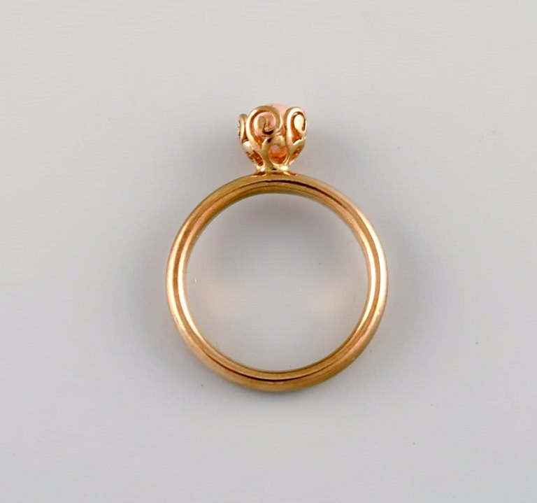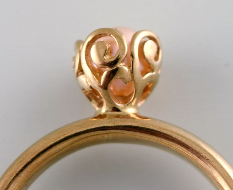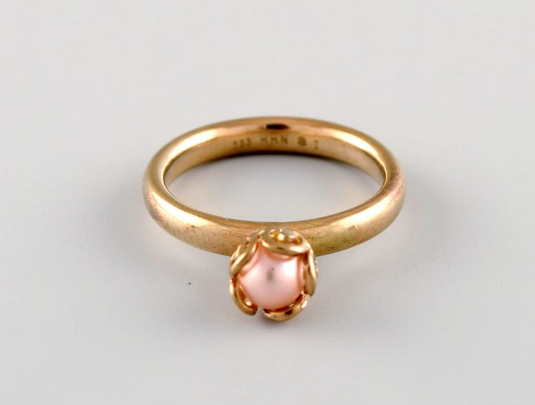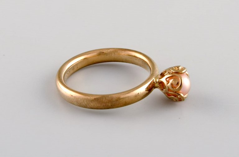 Skandinavisk guldsmed. Vintage ring i 8 karat guld prydet med kulturperle. Midt 1900-tallet.