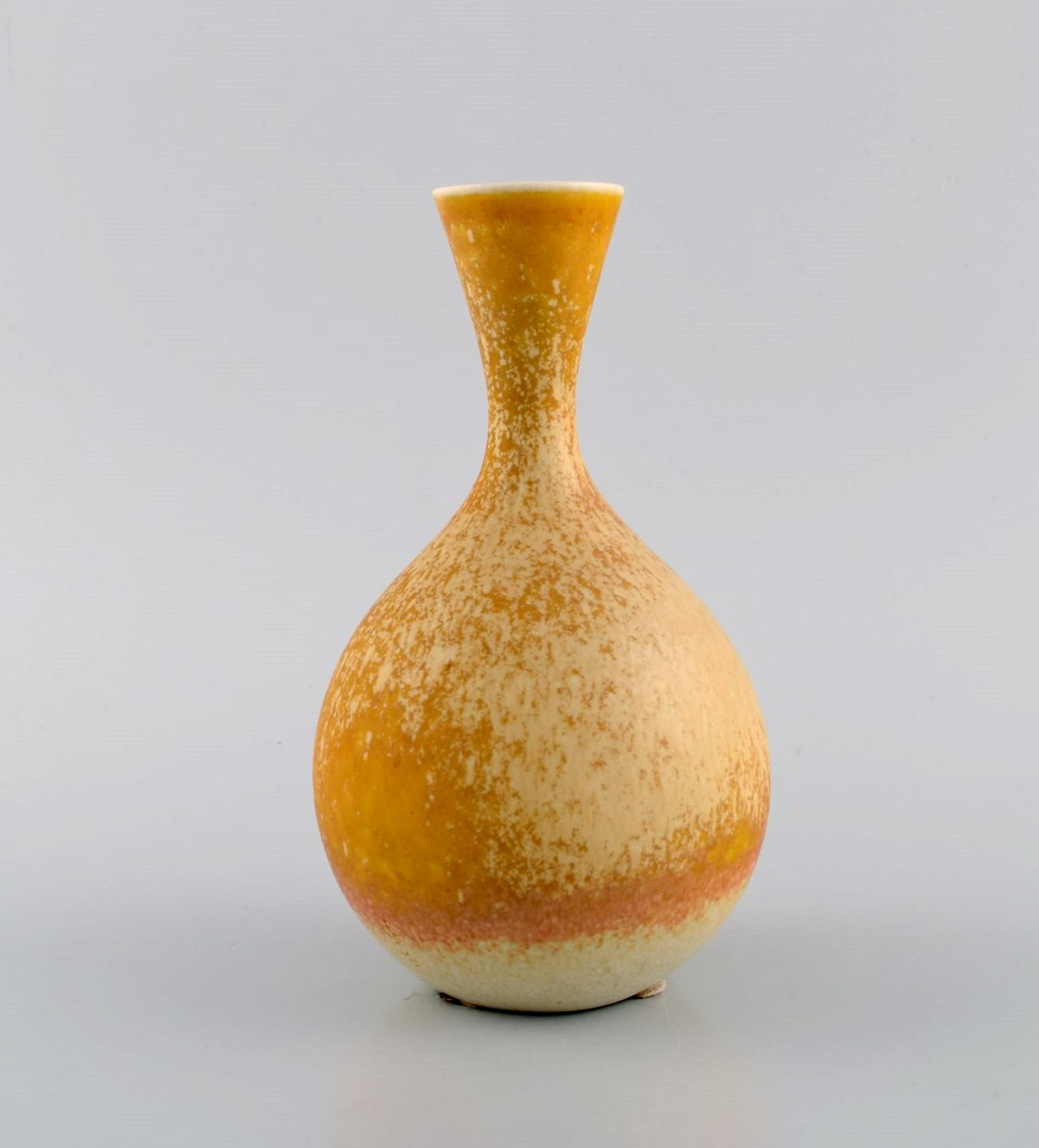 Sven Wejsfelt (1930-2009), Gustavsberg Studiohand. Unika vase i glaseret keramik. Smuk glasur i sennepsgule nuancer. Dateret 1984. Måler: 16,5 x 9,5 cm. I flot stand. Signeret og dateret.
