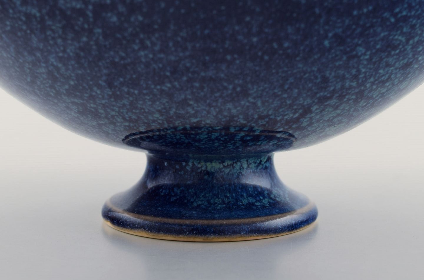 Sven Wejsfelt (1930-2009), Gustavsberg Studiohand. Unika skål på fod i glaseret keramik. Smuk glasur i blå nuancer. Dateret 1990.