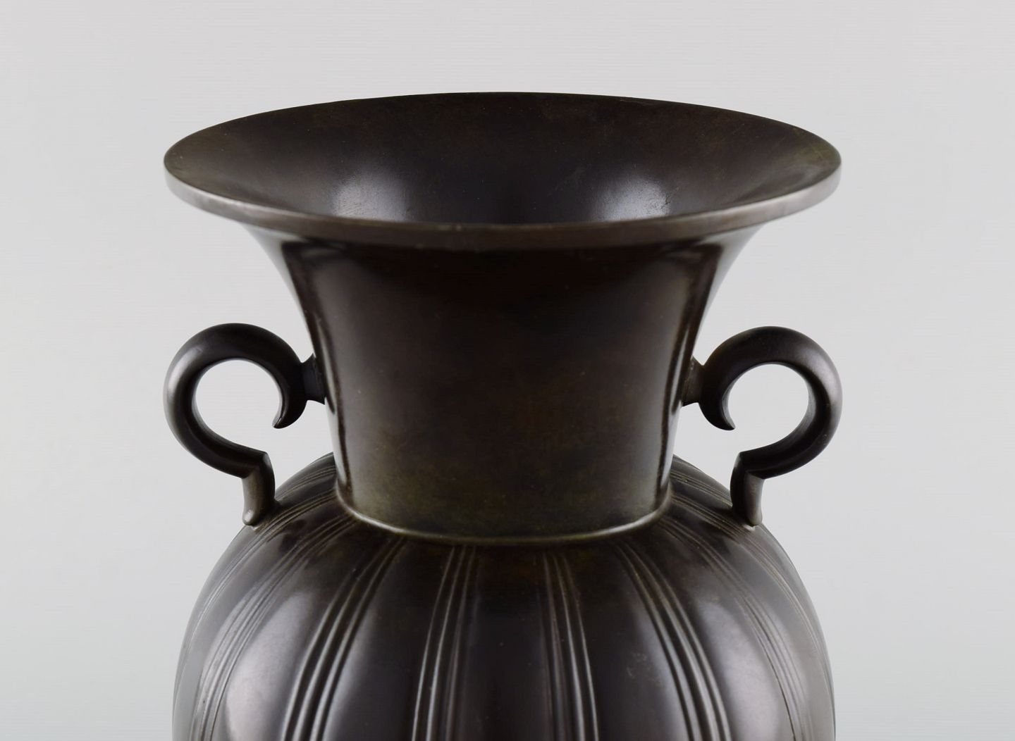 Just Andersen (1884-1943), Danmark. Art deco vase i diskometal. 1940'erne. Modelnummer 1925. Måler: 21 x 15,5 cm. I flot stand med patina. Stemplet.