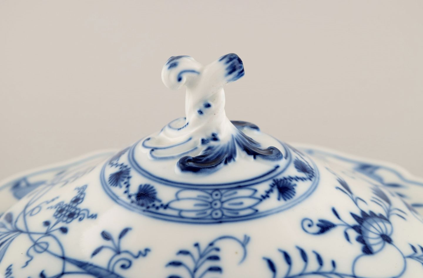 Antique Meissen Blue Onion lidded tureen in hand-painted porcelain. Early 20th century. Measures: 24 x 12.5 cm. Stamped. In excellent condition. 3rd factory quality.