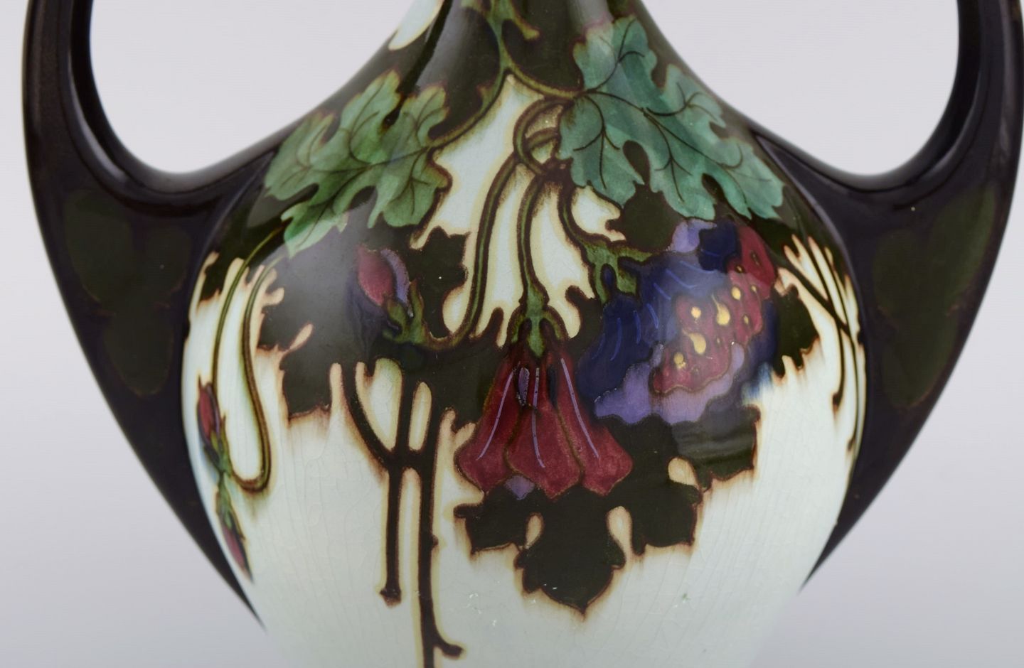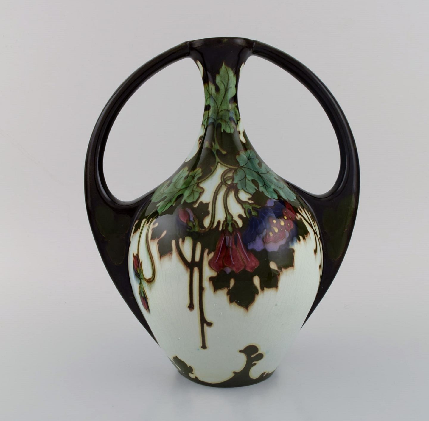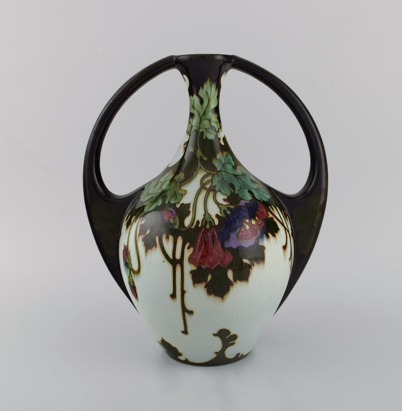 Regina, Holland. Antique art nouveau vase in glazed ceramics with hand-painted flowers and foliage. Approx. 1910.