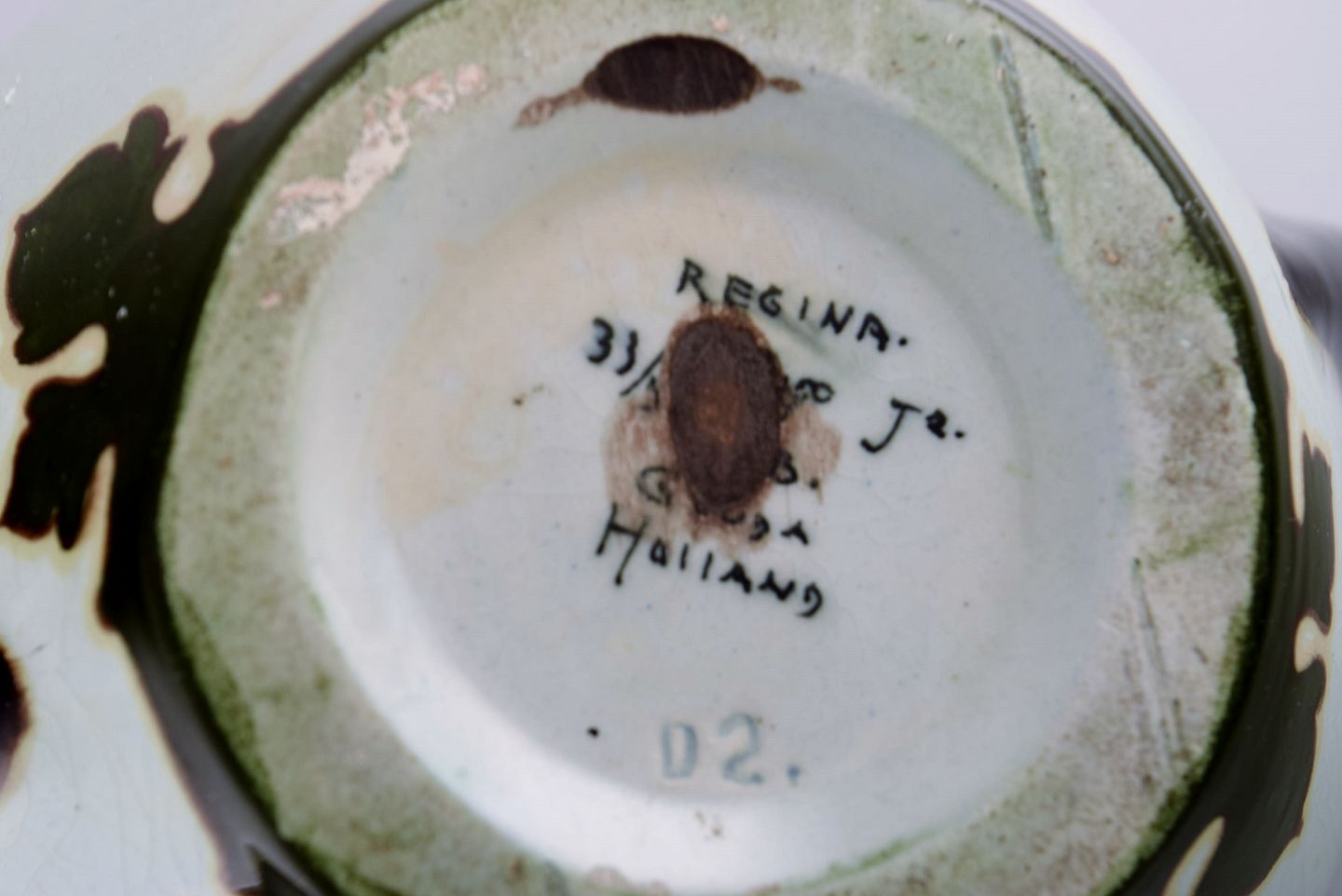 The Regina ceramics factory, Kunstaardewerkfabriek Regina, existed from 1898 to 1979. The factory, located in Gouda, the Netherlands, was established in Queen Wilhelmina's coronation year 1898, hence the name Regina, Latin for queen.