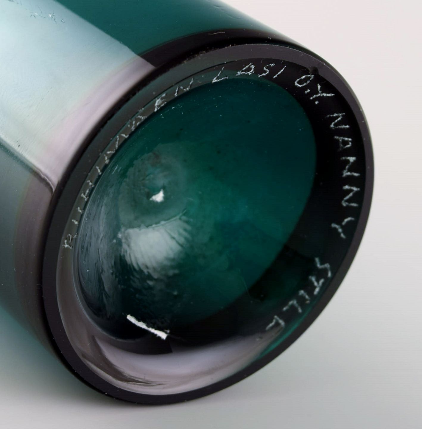 Nanny Still for Riihimäen Lasi. Dekorationsflaske / vase i mundblæst kunstglas. Finsk design, 1960/70'erne. Måler: 32 x 6 cm. I flot stand. Signeret.
