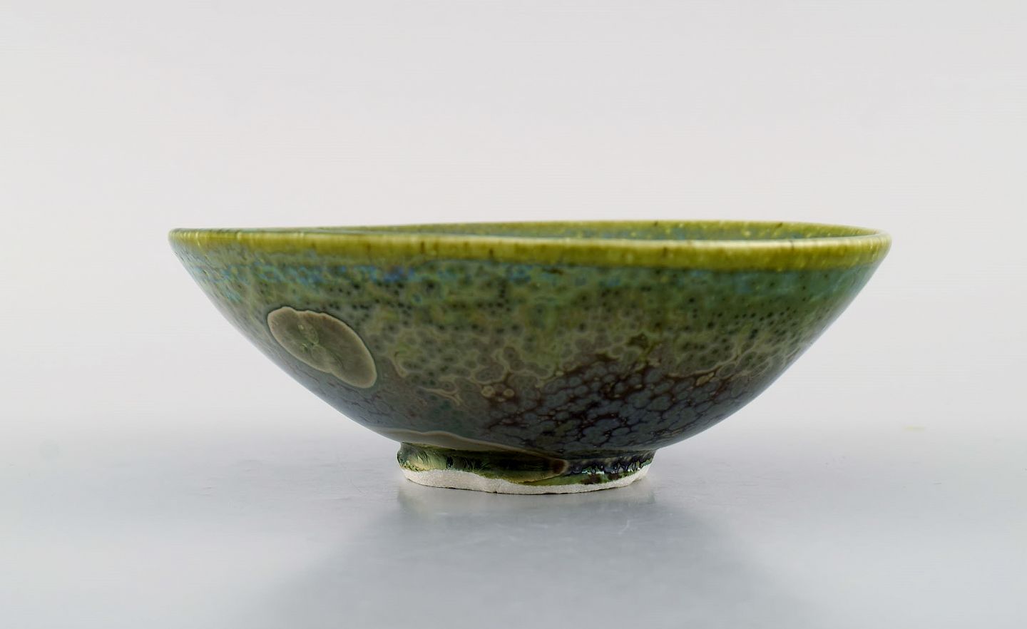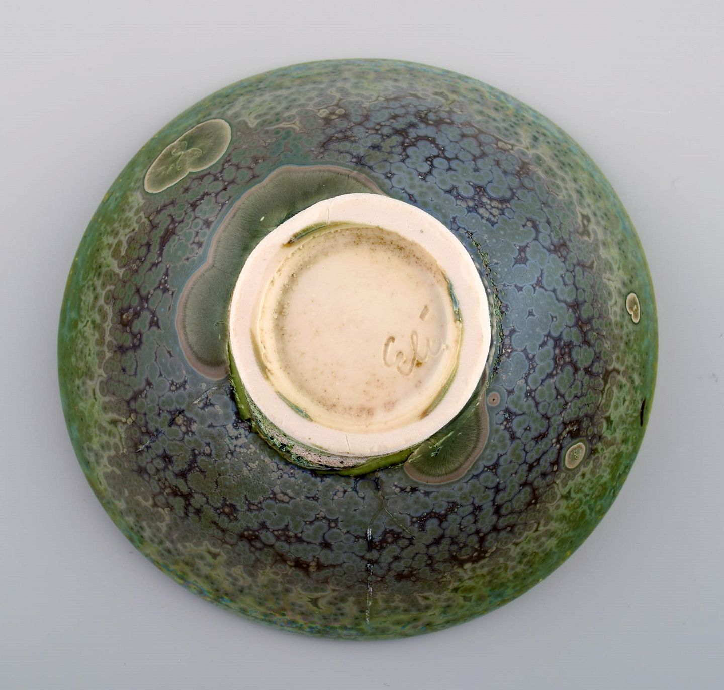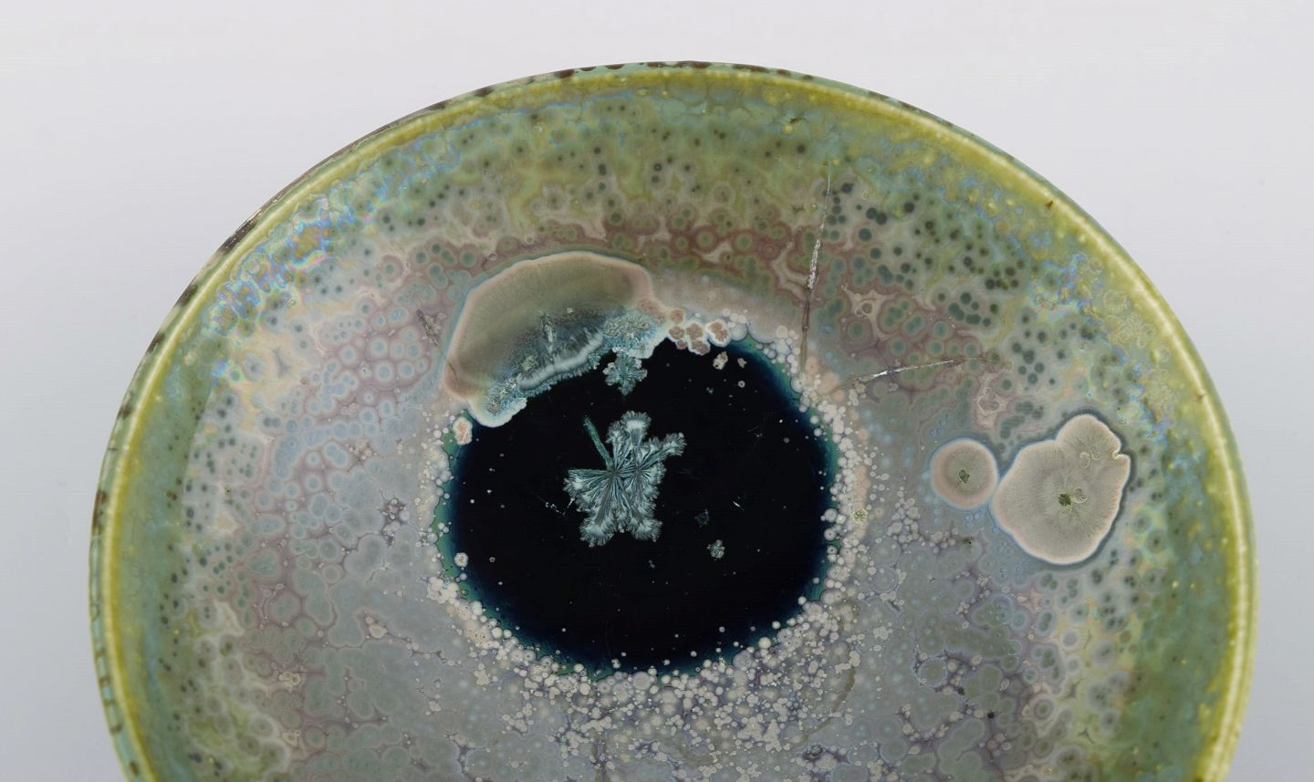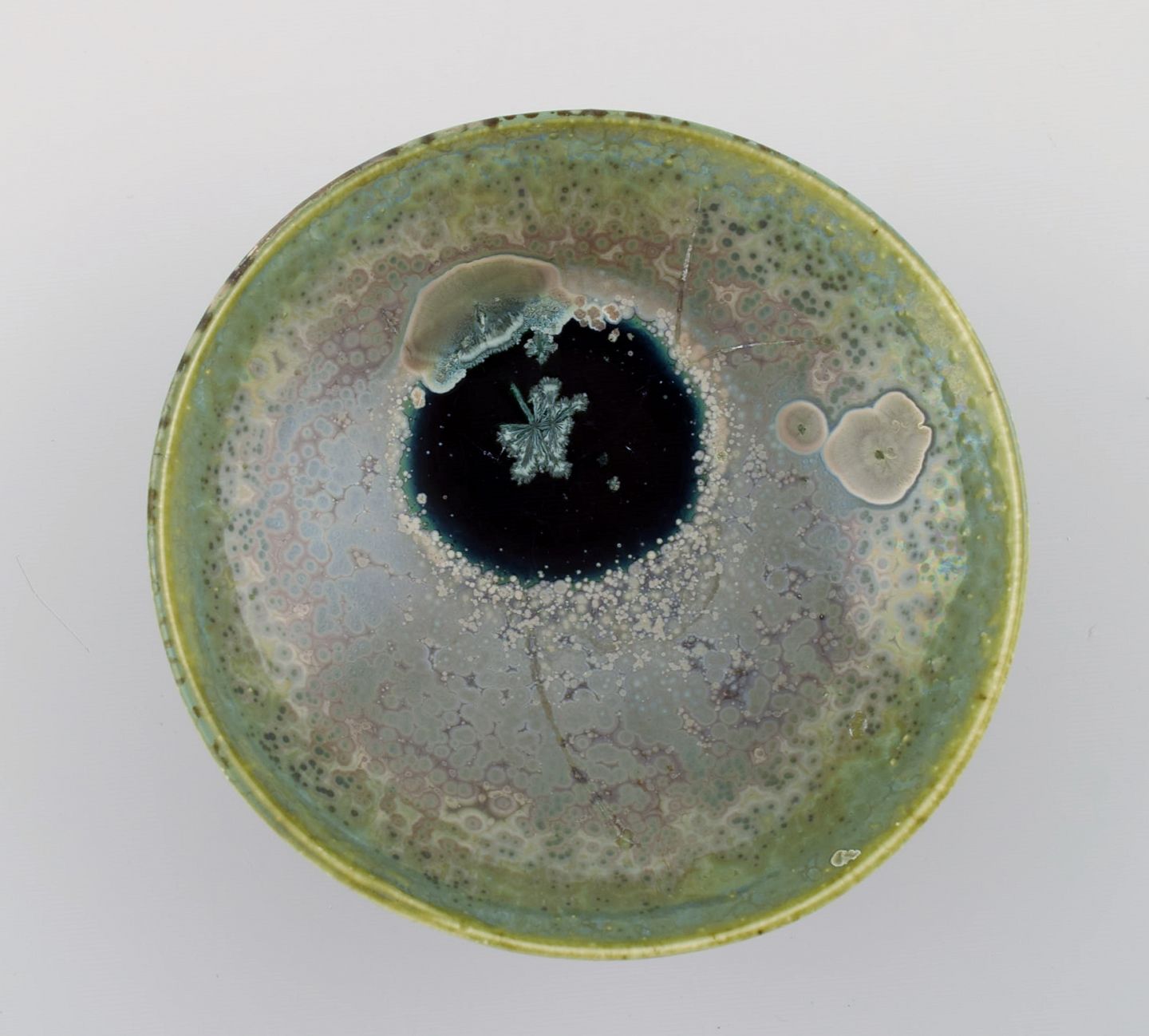 Eli Keller (b. 1942), Sweden. Unique bowl in glazed stoneware. Beautiful crystal glaze in shades of green. 21st Century. Measures: 13 x 4.5 cm. In excellent condition. Signed.