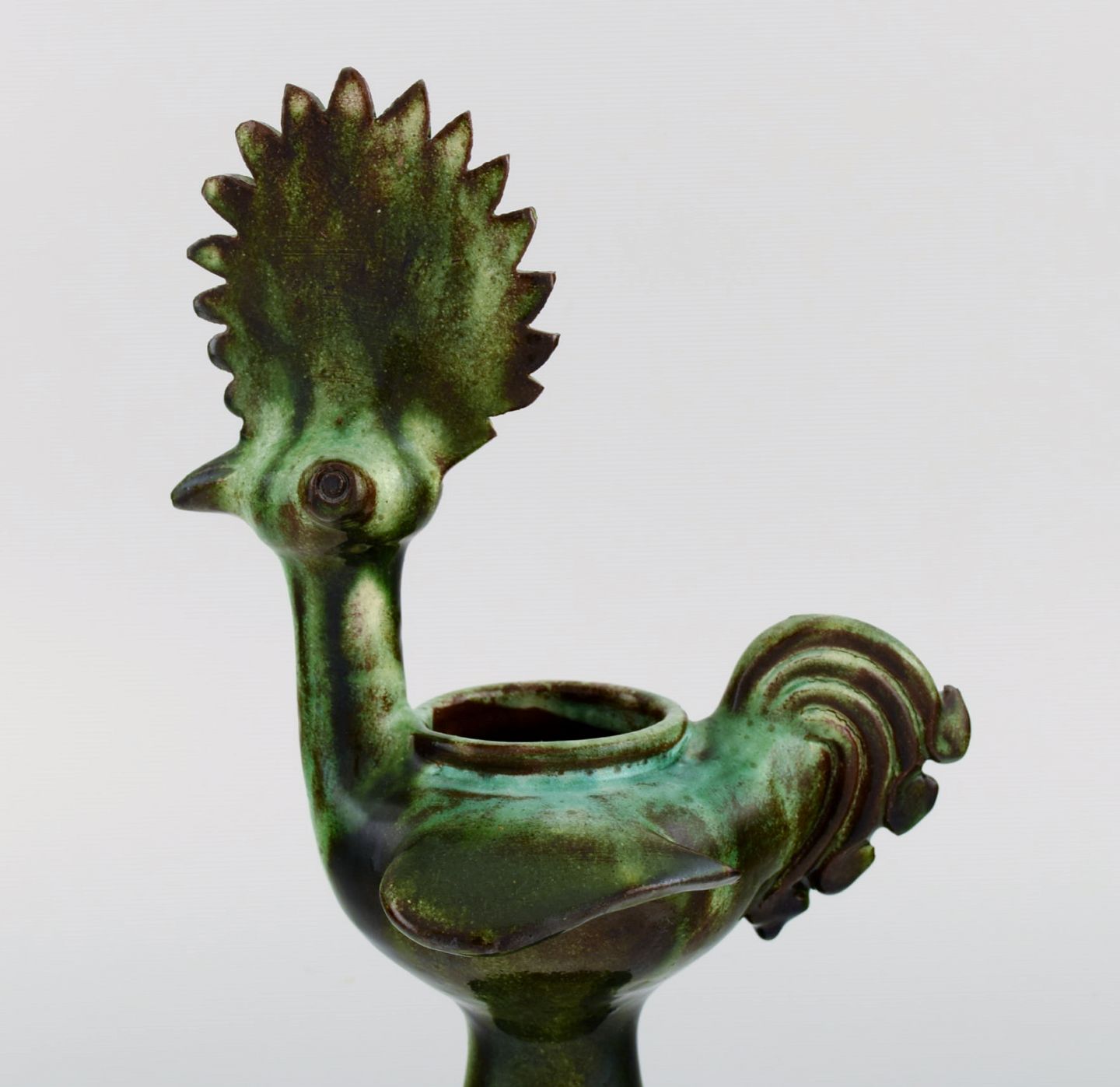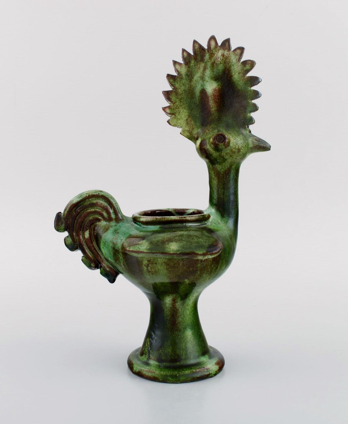 Europæisk studiokeramiker. Unika fugl i glaseret stentøj. Smuk glasur i grønne nuancer. Sent 1900-tallet.