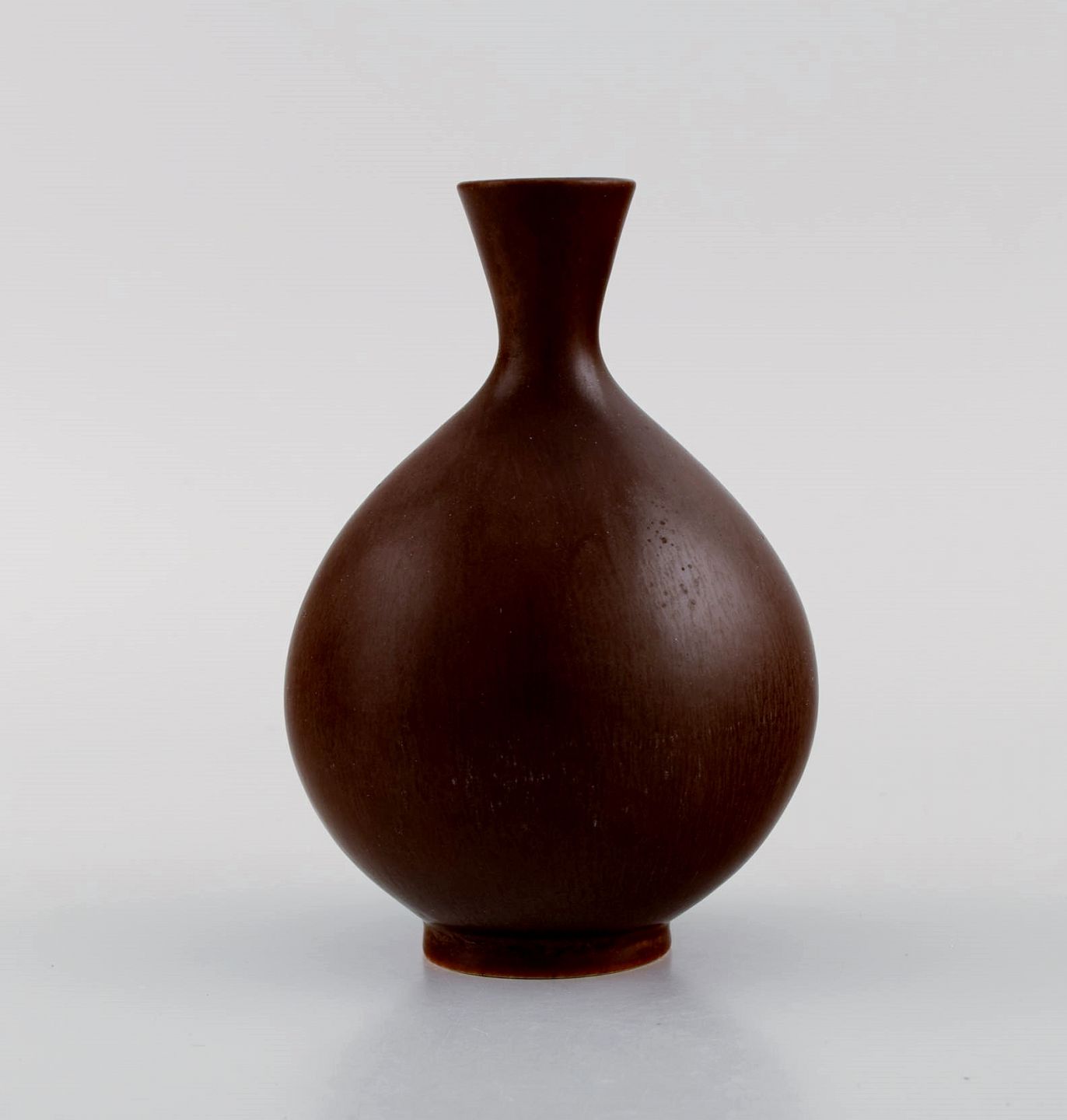 Berndt Friberg (1899-1981) for Gustavsberg Studiohand. Vase in glazed stoneware. Beautiful glaze in brown shades. 1960s.