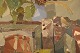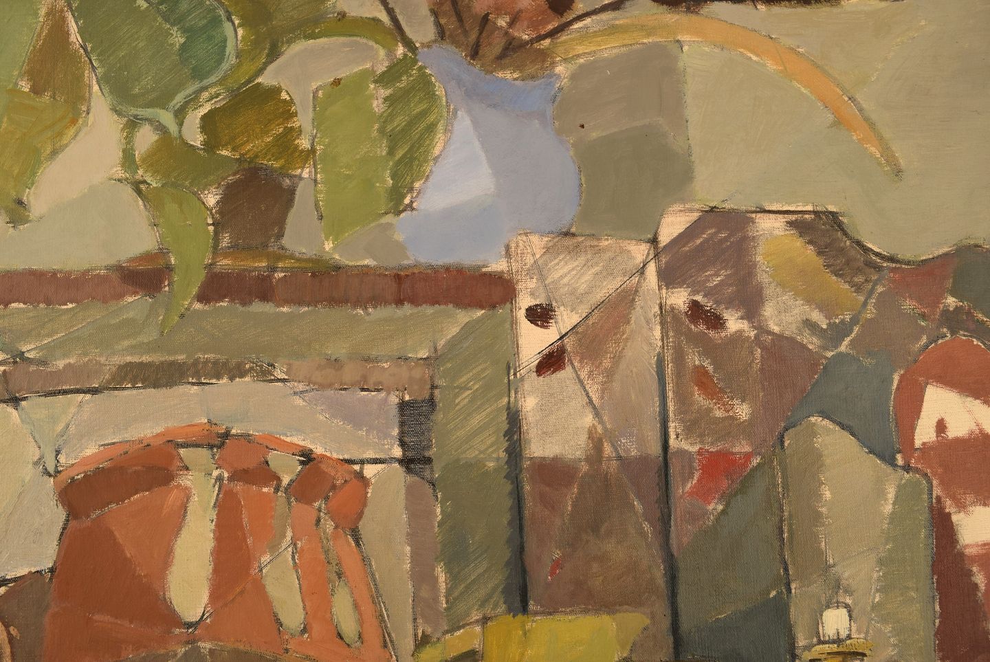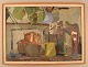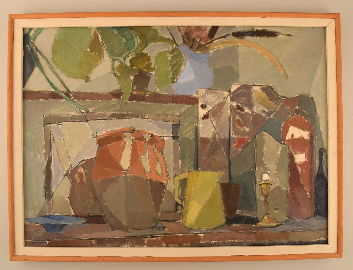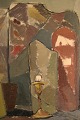 Sigurd Wallin (1916-1999), Sverige. Olie på plade. Modernistisk stilleben. Midt 1900-talllet. Pladen måler: 62,5 x 45 cm. Rammen måler: 3 cm. I flot stand. Signeret.