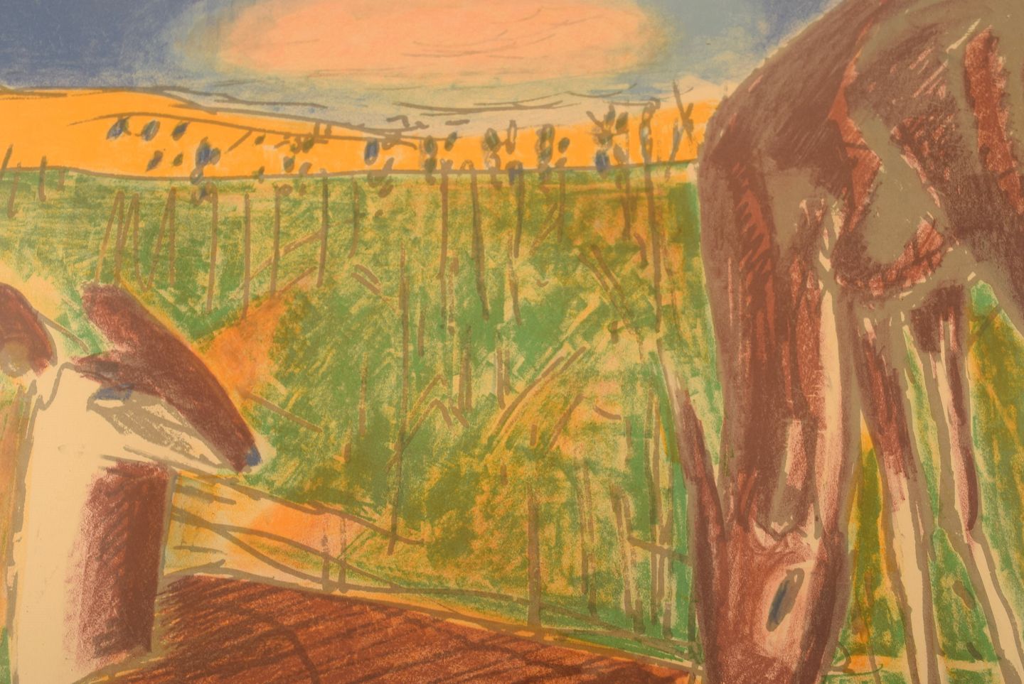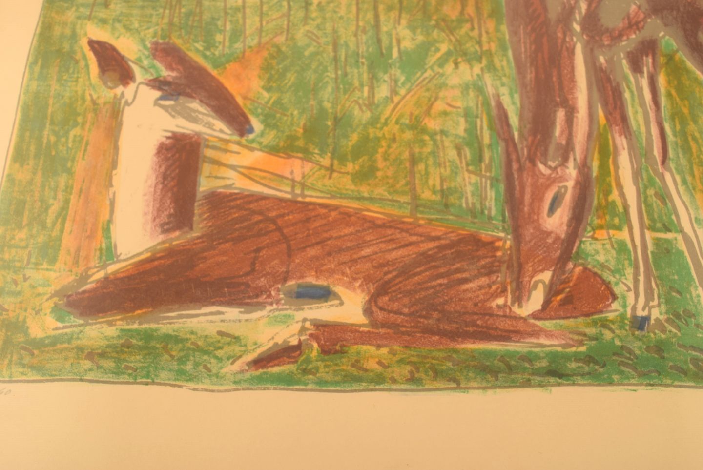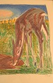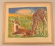 Axel Salto. Farvelitografi. Nummer 71/260. Hjorte på mark. 1920'erne.
