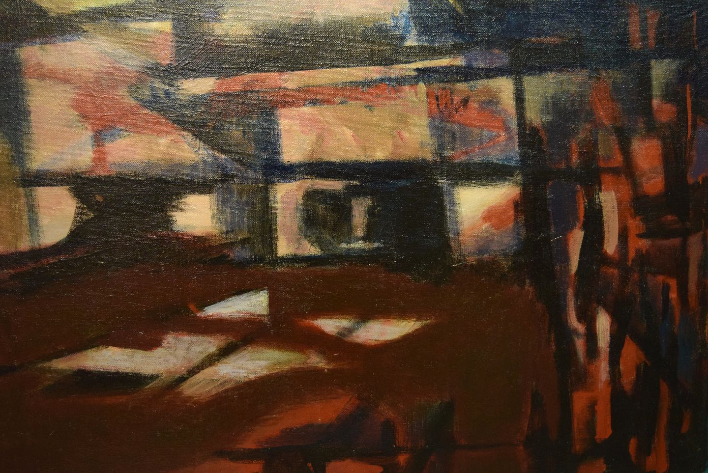 Albert Ferenz (1907-1994), Tyskland. Olie på lærred. Abstrakt komposition. "Spiegelung". Dateret 1974.