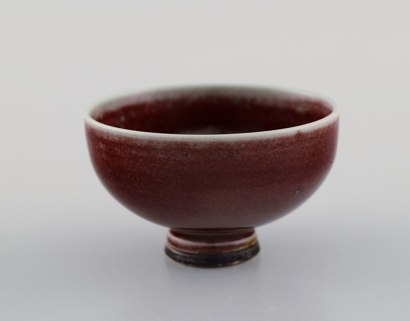 Berndt Friberg (1899-1981) for Gustavsberg Studiohand. Miniature skål i glaseret stentøj. Smuk glasur i røde nuancer. 1960'erne.