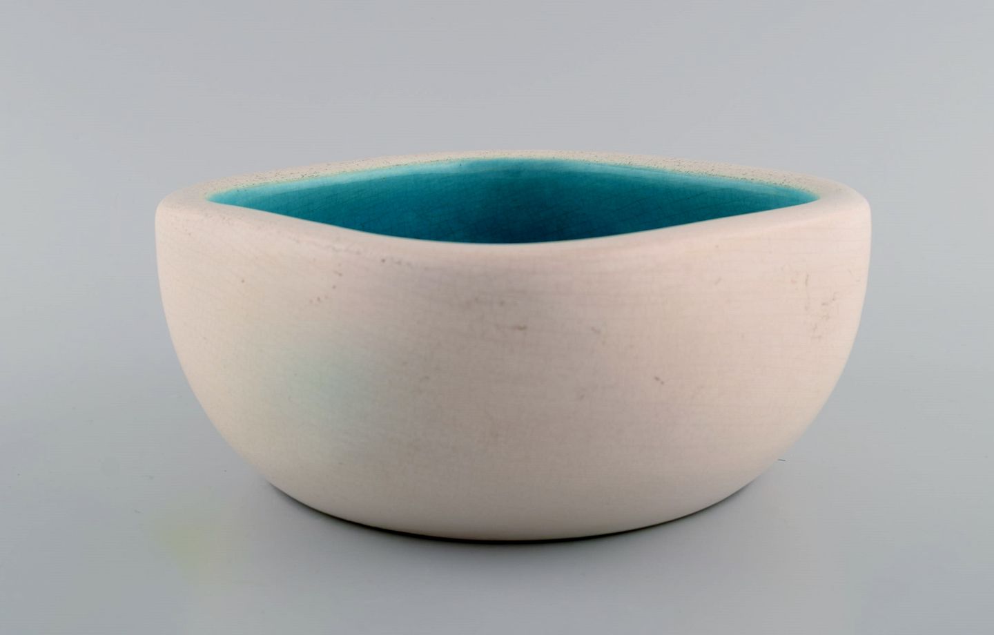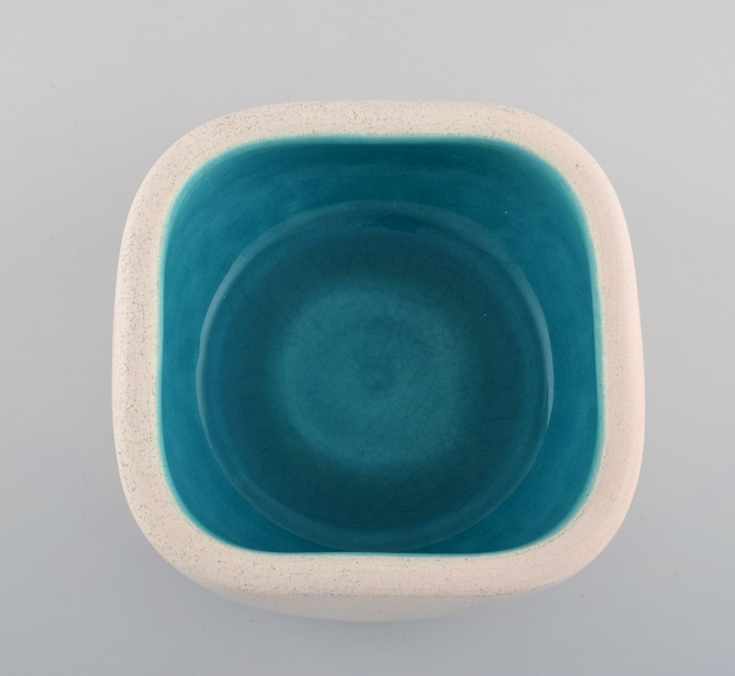 Keramos Sèvres, France. Bowl in glazed stoneware. Beautiful turquoise glaze. Clean design, mid 20th century. Measures: 21 x 9 cm. In excellent condition. Signed.