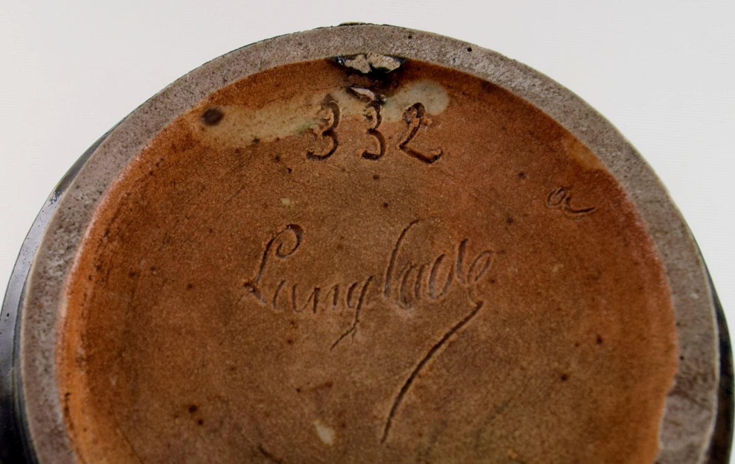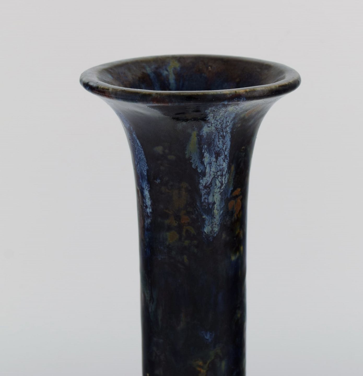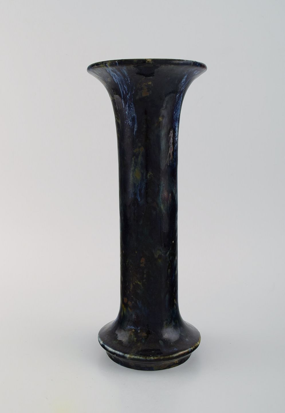 Jean Langlade (1879-1928), fransk keramiker. Slank vase i glaseret keramik. Smuk glasur i sorte, isblå og jordnuancer. 1920'erne.